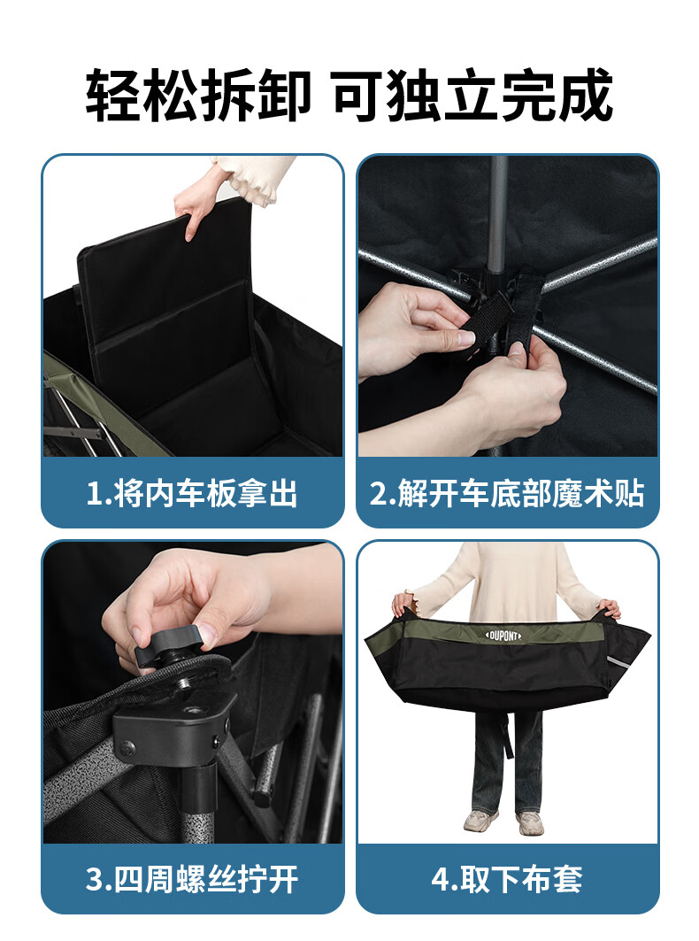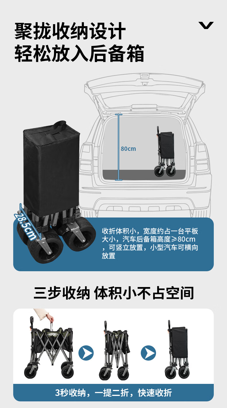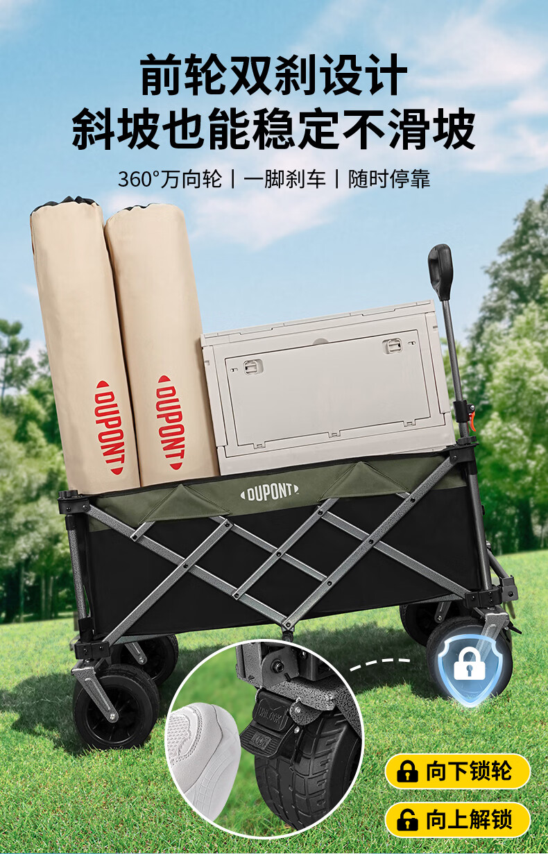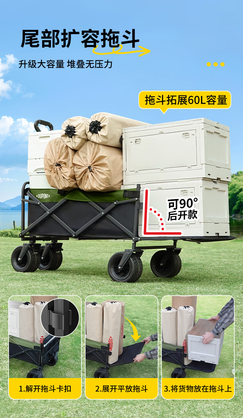 杜邦(DU PONT)户外露营推车野餐营地拖车折叠桌椅套装旅行购物拉车折叠车 120L【静音实心轮】后开模式