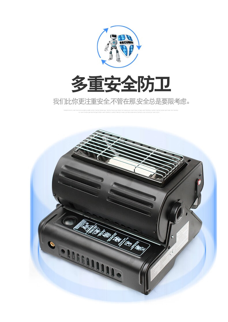 SEAROCK 海岩户外露便携式取暖器车载取暖火炉室内液化气煤气冰钓取暖炉 升级黑色双气(可放平使用)