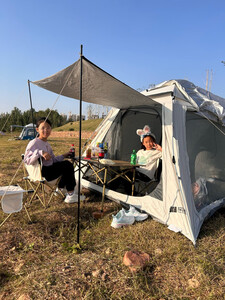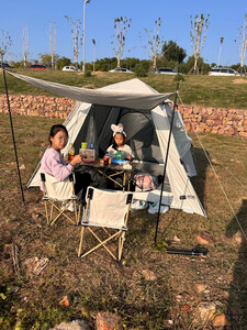 这款帐篷真的超出预期!面料选用高密度防水牛津布,暴雨天实测外层水珠成珠滑落,内层完全干燥。搭建系统特别人性化,铝合金支架带自动锁扣,单人5分钟就能搭好。内部空间设计超合理,2.2米的宽度让一家三口能舒展睡卧,顶部透气网纱搭配侧窗通风,闷热天气也能保持空气流通。收纳时自带压缩袋,折叠后仅背包大小,自驾露营放后备箱毫无压力。细节处更是贴心,门帘带魔术贴防蚊虫,地钉加粗设计抗风性强,性价比在同价位里堪称天花板,必须给五星好评!
