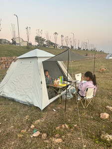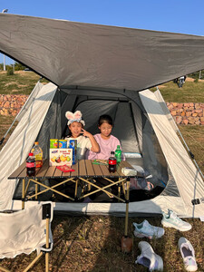 这款露营帐篷真的超出预期!上周带它去了山林露营,搭建特别方便,我一个女生10分钟就搞定了,配件齐全还带详细图解。空间比想象中宽敞,1.8米的充气床垫放进去,旁边还能堆下两个大背包,一家三口住完全不挤。 最惊喜的是防雨性,半夜下了场急雨,帐篷内侧一点没渗水,底部的防水布也很厚实,早上起来地面还是干的。透气性也不错,两侧有透气窗,拉上纱网能防蚊虫,关上又能挡风。收纳后体积不大,塞进后备箱不占地方,重量也适中,拎着走一段路不累。 整体材质摸起来很扎实,感觉能用上好几年,性价比挺高,露营新手闭眼入不踩雷!