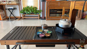 IGT,查了一下,也就是多功能桌的意思,看起来很专业。可以拆分成三个整单元,也可以拆分成六个半单元,自己喜欢怎么改就怎么改,飞碟炉,茶盘,可以上了。后期可以玩儿的地方很多,慢慢来