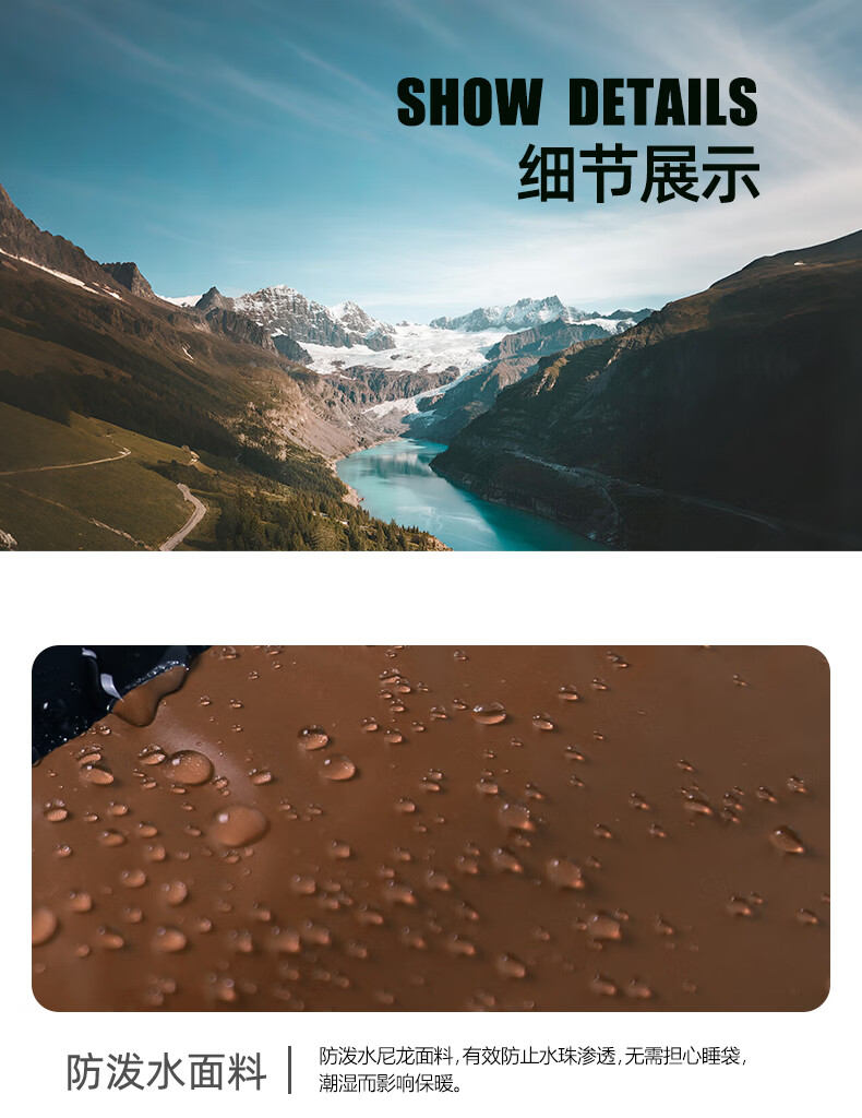 这款睡袋完全超出预期!夜间温度基本在5度左右,钻进睡袋后一点不觉得冷,保暖性靠谱,半夜被热醒,睡眠质量特别好,拿在手里有质感,装进背包后空间合适,徒步时背着完全没负担,便携度满分。睡袋的质量也很让人放心,面料摸起来厚实耐磨,缝线工整没有多余线头,几分钟能快速打包好。
