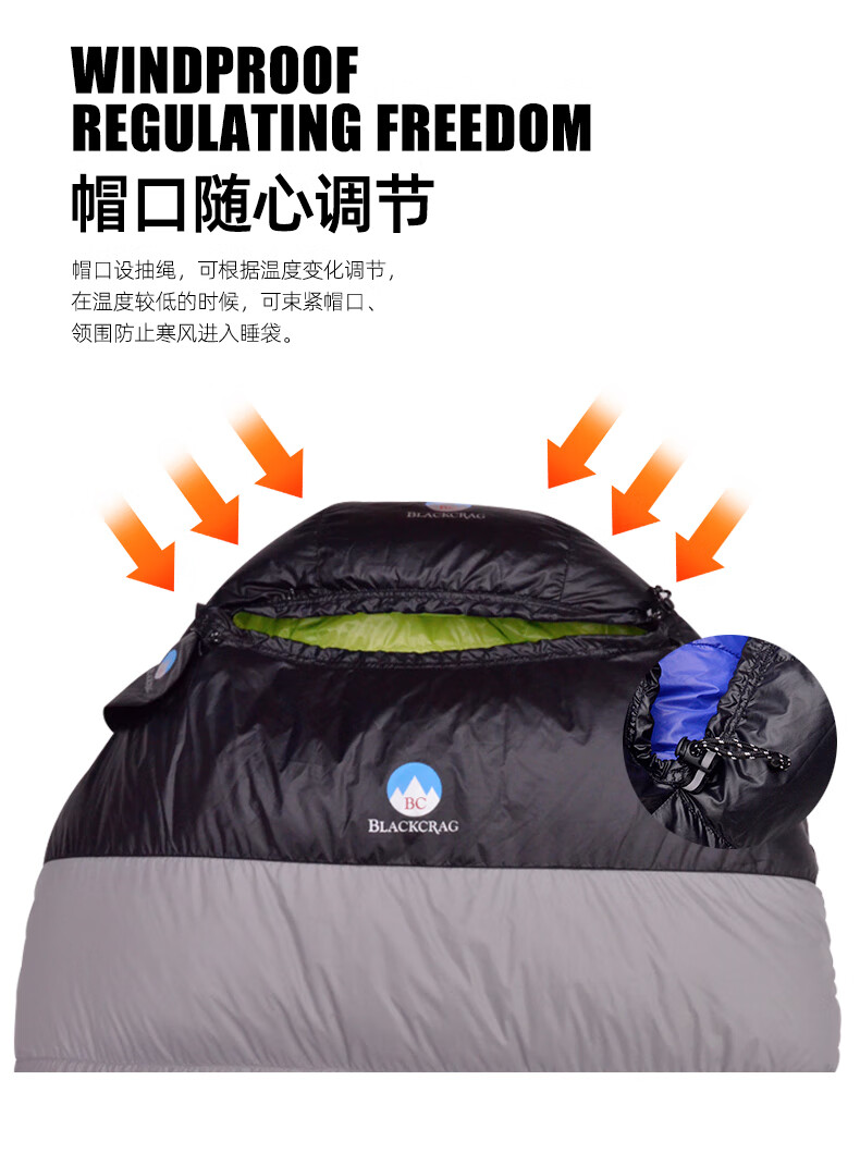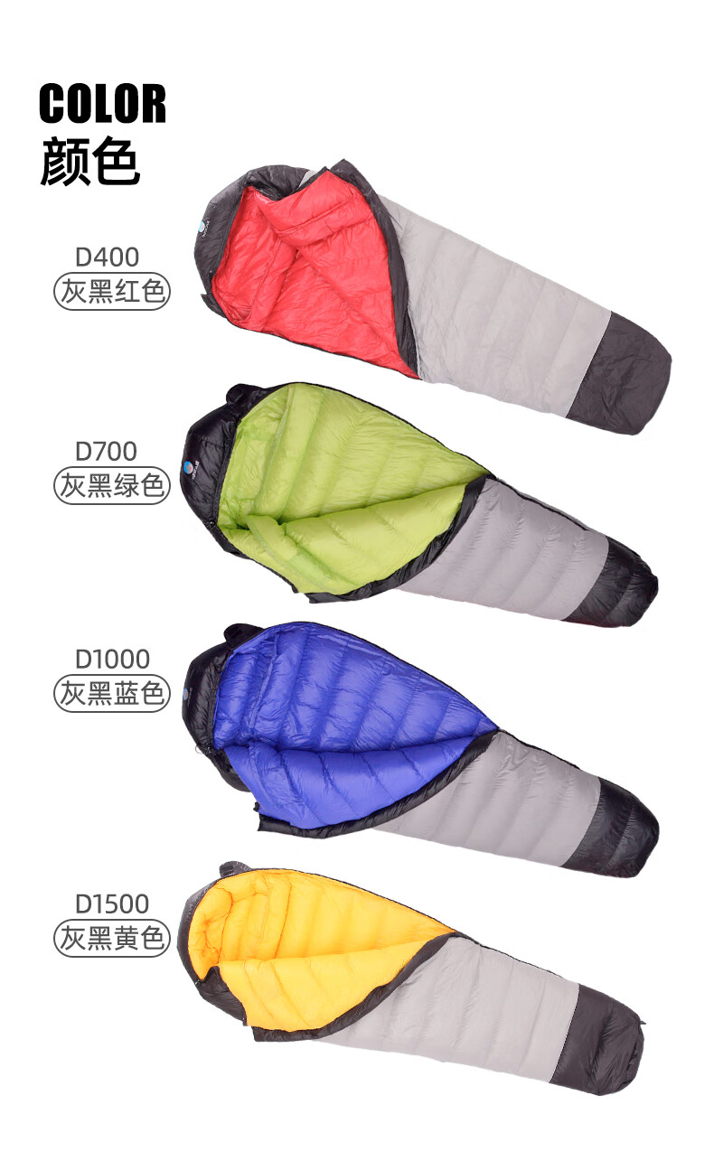 黑岩(BlackCrag) 新款D系列 木乃伊睡袋 超轻羽绒睡袋 户外成人睡袋 拼接 D700灰黑绿 右开