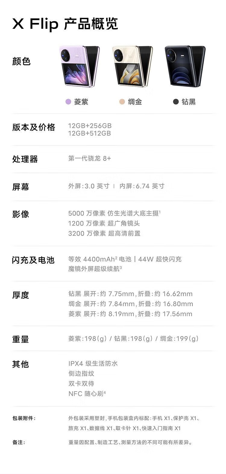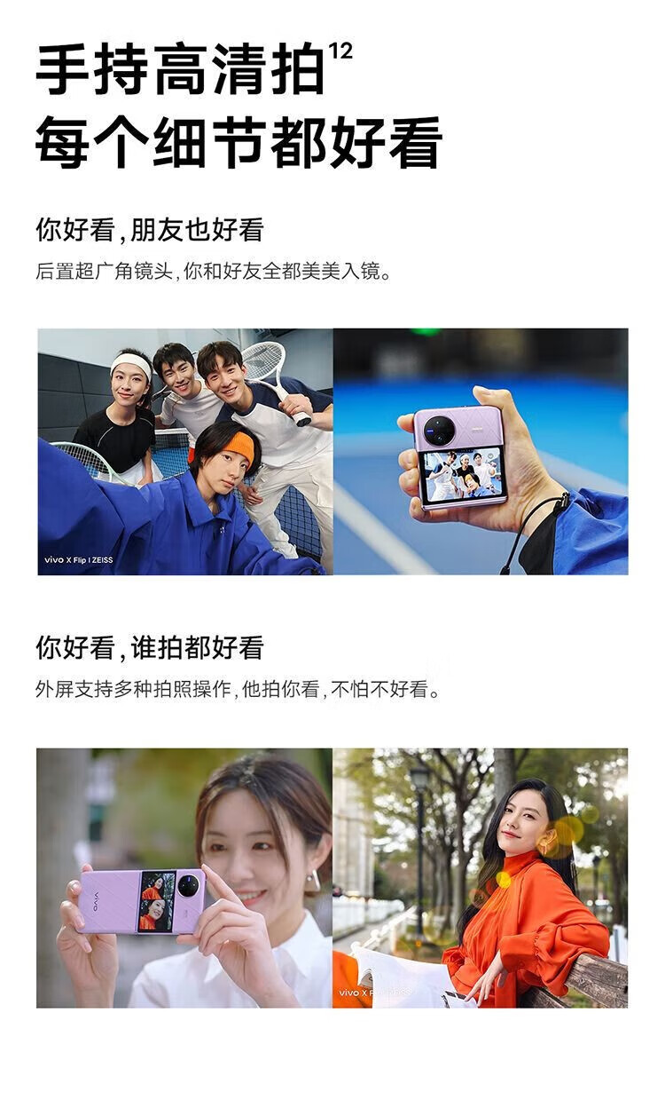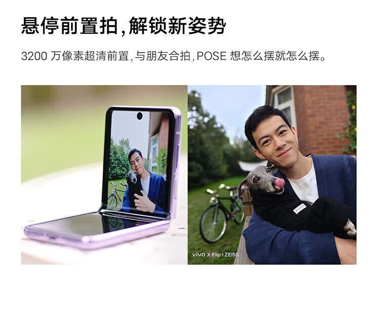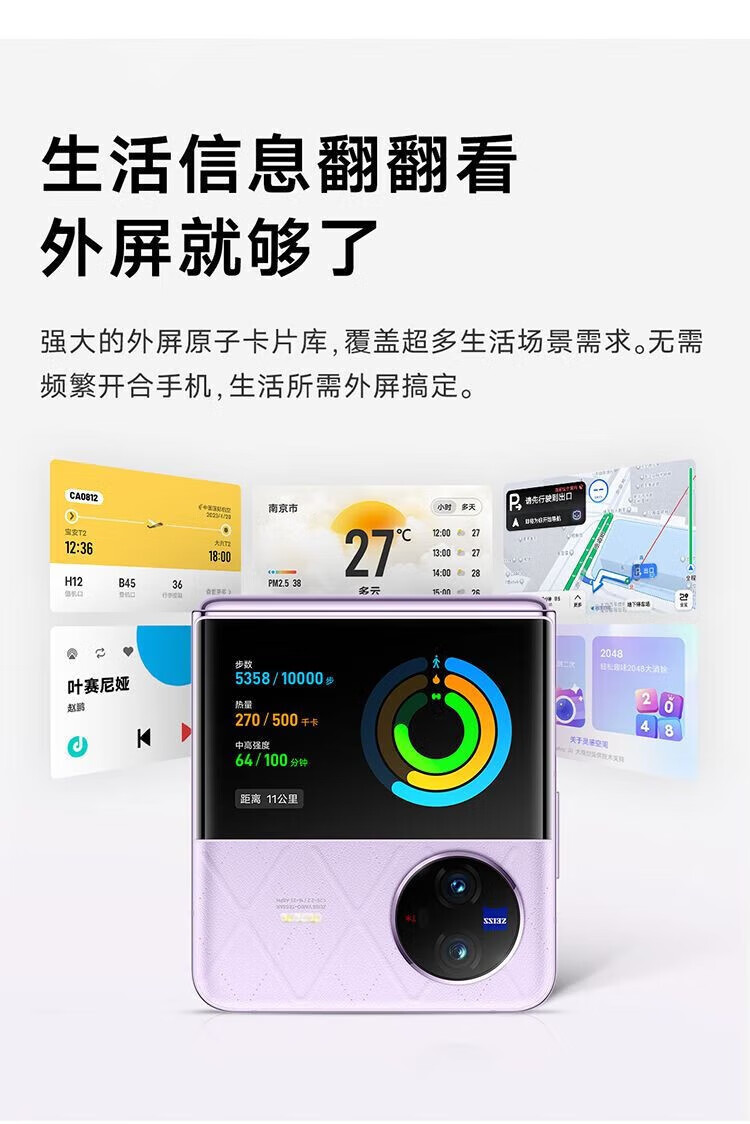 vivo X Flip 轻巧优雅设计 魔镜大外屏 悬停蔡司影像 骁龙8+ 芯片 5G 折叠屏手机 xflip 菱紫 12GB+256GB 官方标配+原封未激活+全国联保