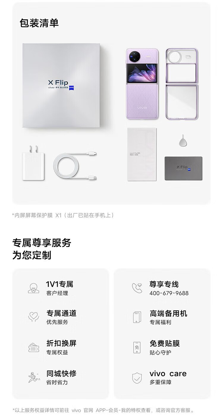 vivoX Flip 骁龙8+芯片 掌心折叠设计 悬停自拍 折叠屏xflip 绸金 套餐一