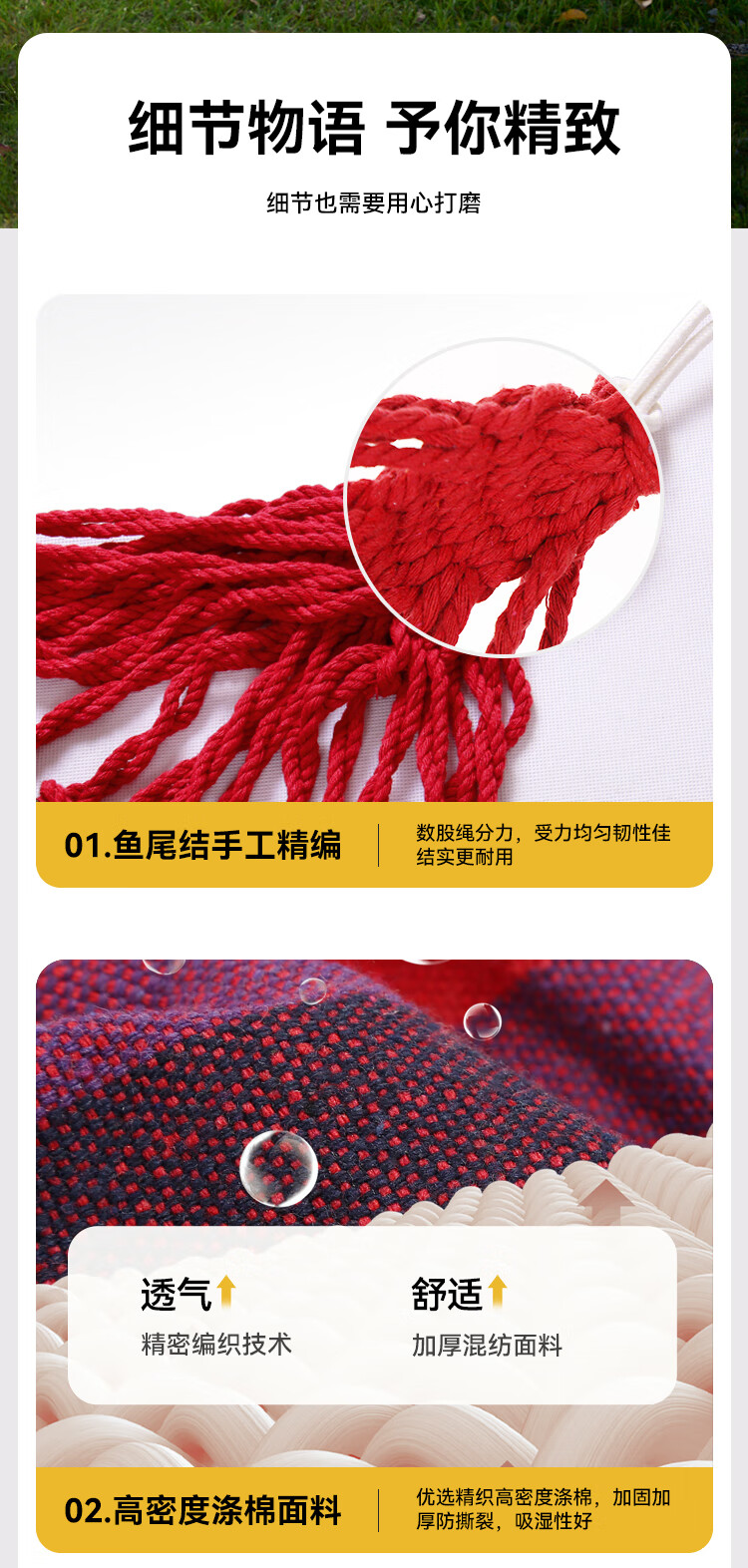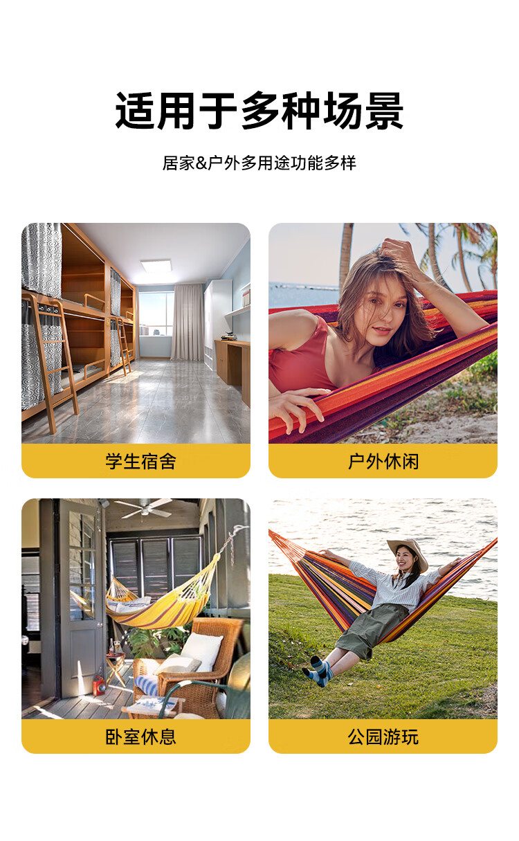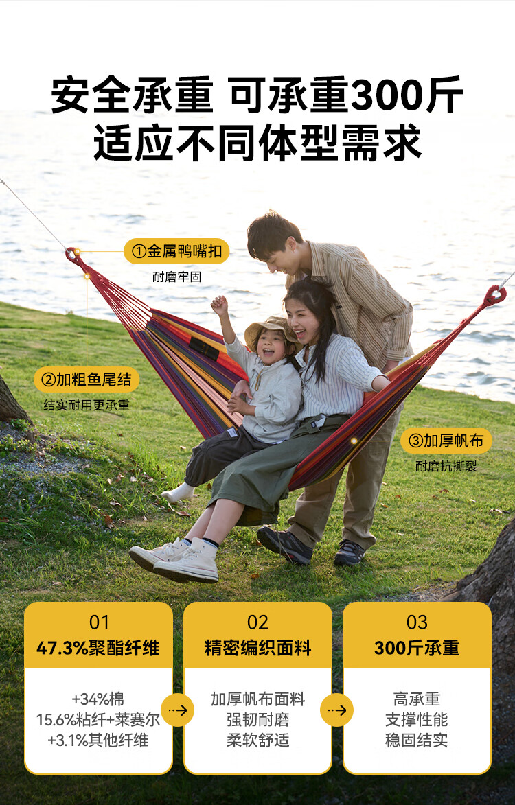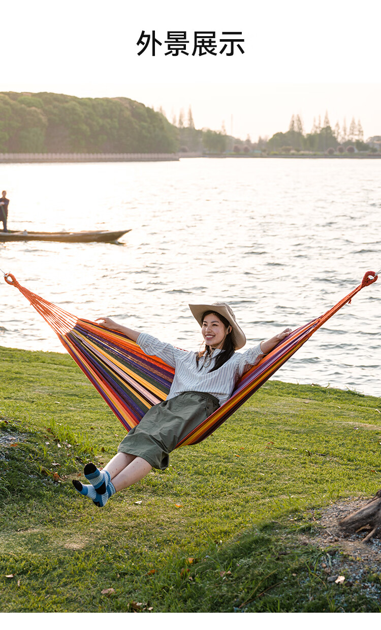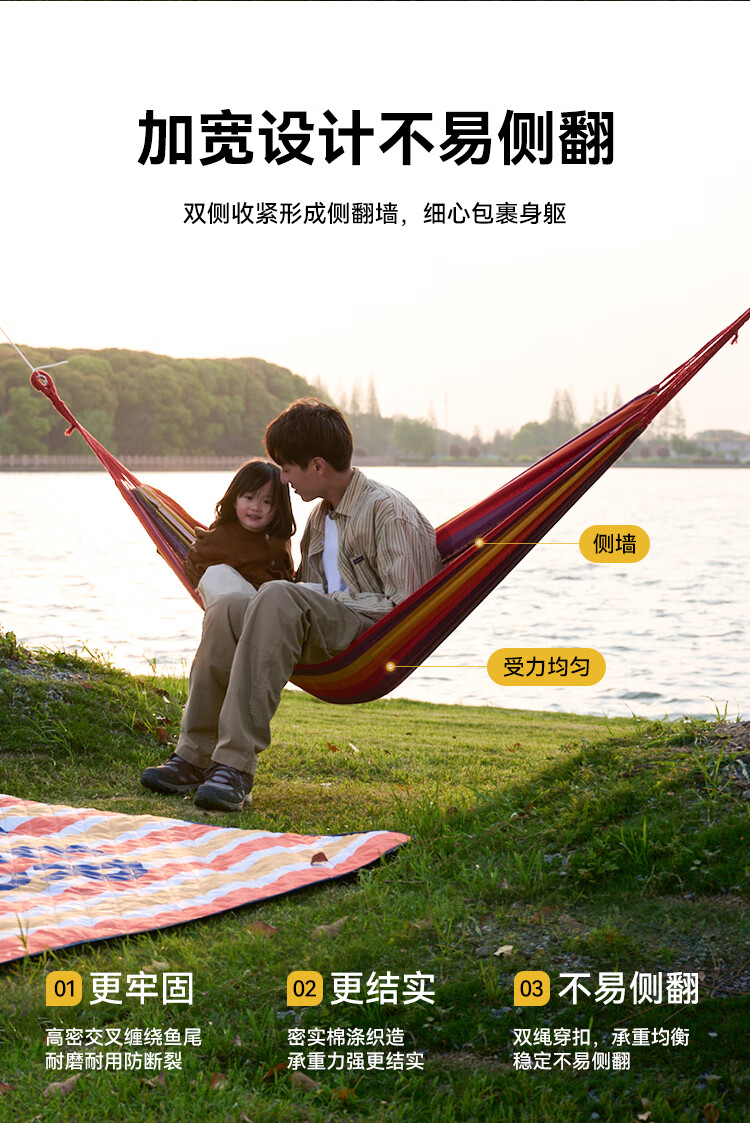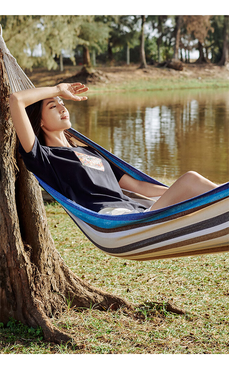 带上吊床,摇晃在盎然的春天里春日盈盈,带上朋友去户外找春天,在树荫下系一张吊床,悠哉度日。 带了伯希和的防侧翻吊床的新色 -黄蓝条纹清新配色,轻松融入春天,不易侧翻 ,300斤的高承重,安心摇动。