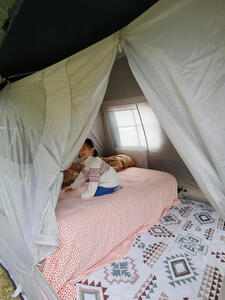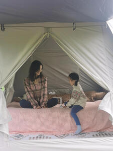 帐篷非常的大,适合一家三口或者四口过夜,非常的棒,卧室很大 便携性能:两人搭建很快,首次开帐大概用了不到半个小时,第二次收帐篷只能了不到十分钟,对新手很友好 透气效果:纱帘很多,白天打开纱帘,透气非常好,过冬带雪裙保暖也不错,我们试过零度过夜带2千瓦电暖气是没问题的 展开类型:属于速开帐篷,对新手很友好, 适用场景:晴天下雨都没问题,带黑胶隔热隔隔光也非常不错 整体感觉性价比非常的高,而且颜值在线