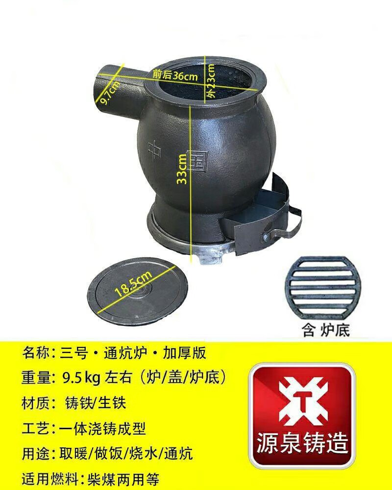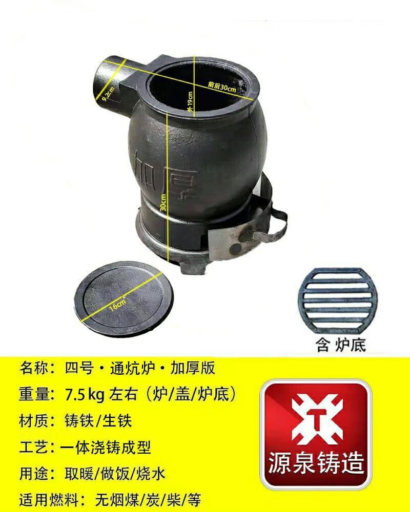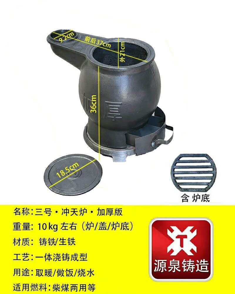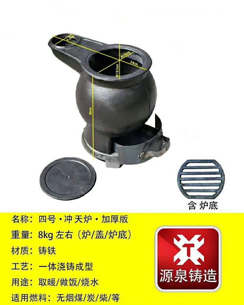 农村家庭养殖场用取暖炉生铁炮弹炉柴火I炉烧炕炉煤炭炉 铸铁炉子 2号冲天炉子(取暖60平米)