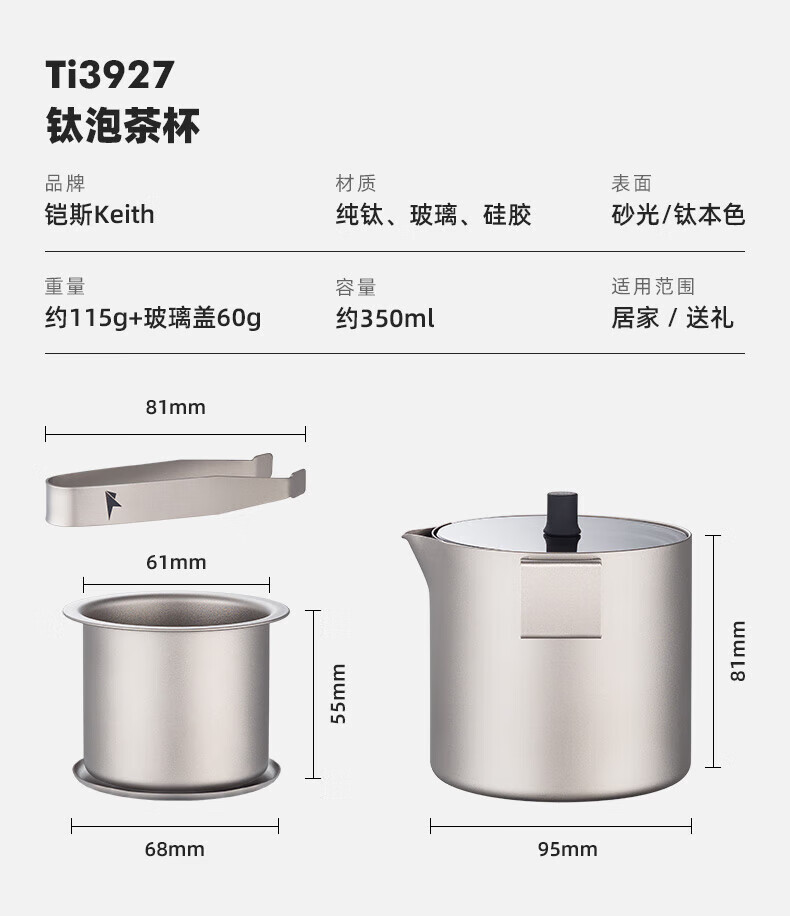 铠斯(KEITH)纯钛泡茶杯手抓杯现代简约茶具户外茶水分离杯过滤茶杯Ti3927