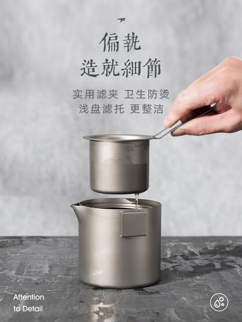 必唯纯钛户外旅行茶具套装公道杯380ml单层可煮茶露营泡茶器便携茶壶 Ti3141D 380ML公道杯