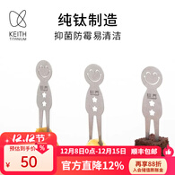 KEITH铠斯【纯钛水果叉】水果签创意卡通三件套装蛋糕签便携