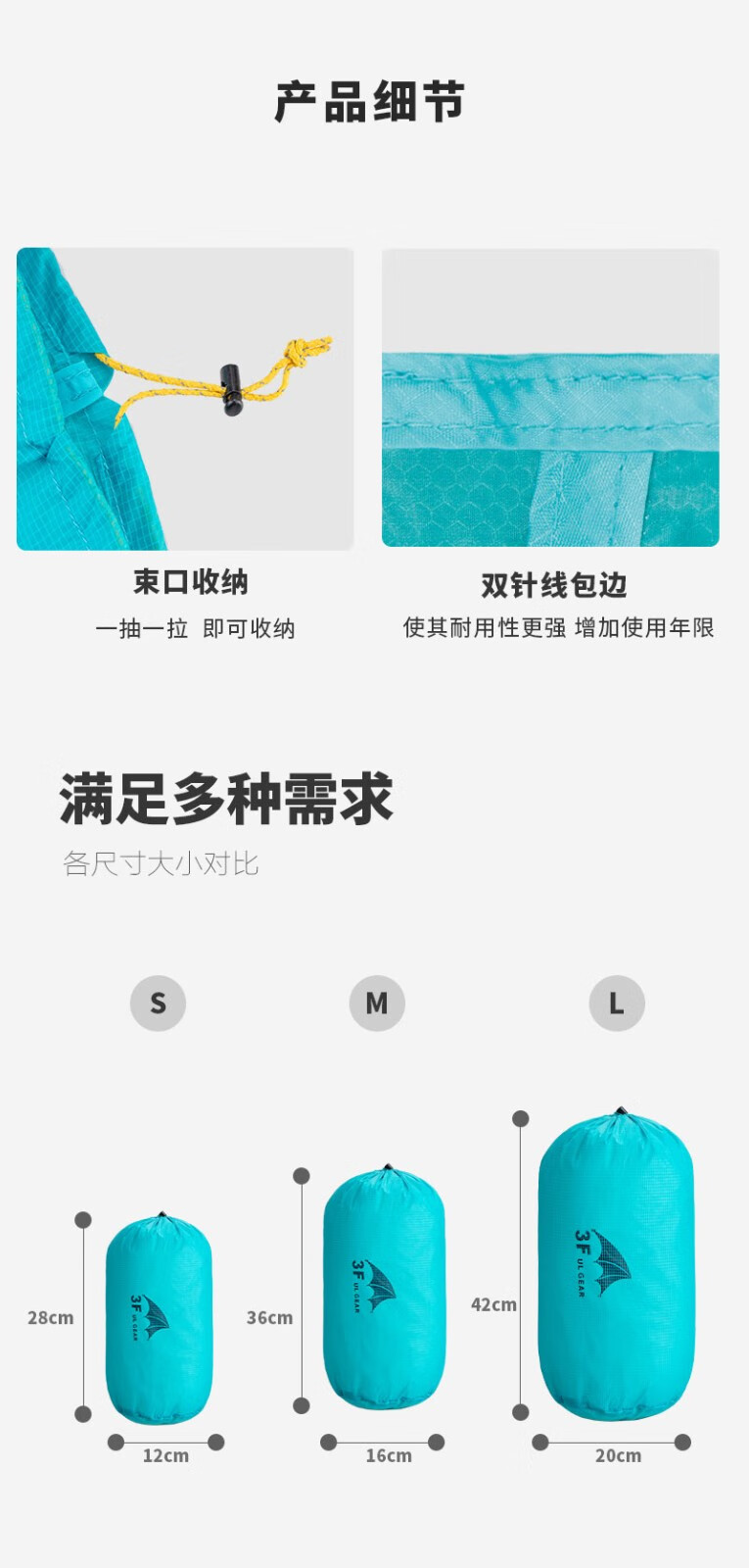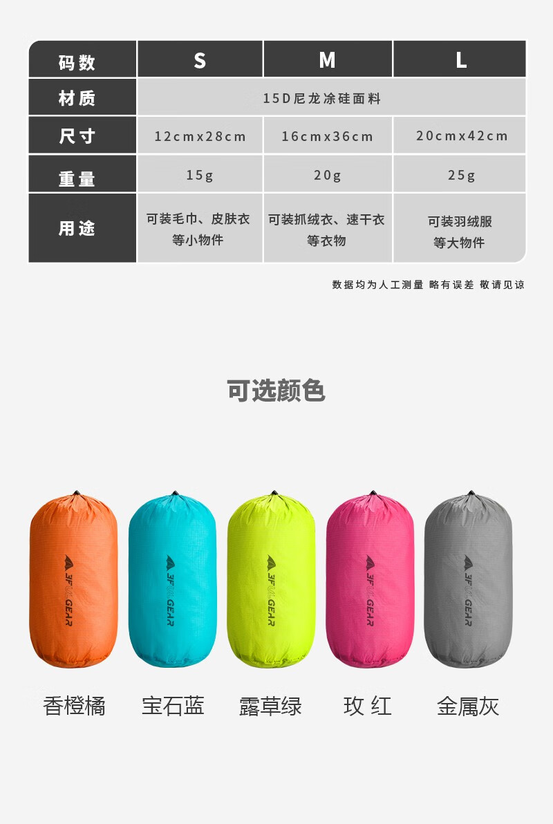 三峰出防水收纳袋简直是户外出行的神!15D涂硅面料,轻若无物,带着毫无负担。上次溯溪,装在里面的衣物、电子设备干爽如初,防水性超绝。它还有排气阀,压缩后省出好多背包空间,衣物、睡袋都能装,尺寸多样,完美适配各种需求,入手不亏!