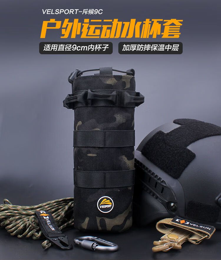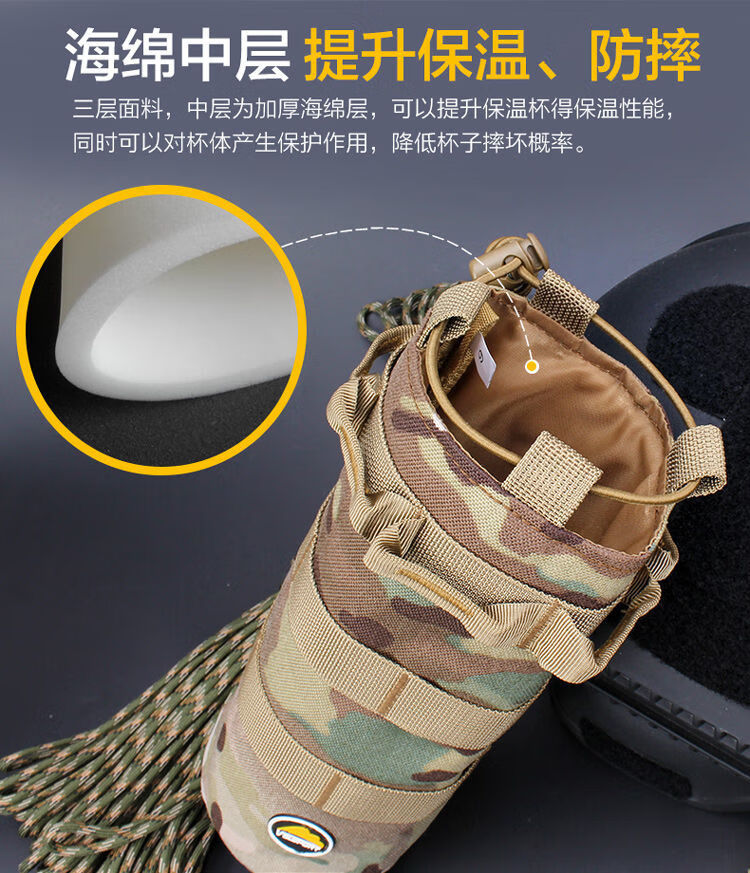 户外9cm直径水壶包运动MOLLE腰挂战术水杯袋迷彩副包大容量杯套 8.8cm摩羯迷彩