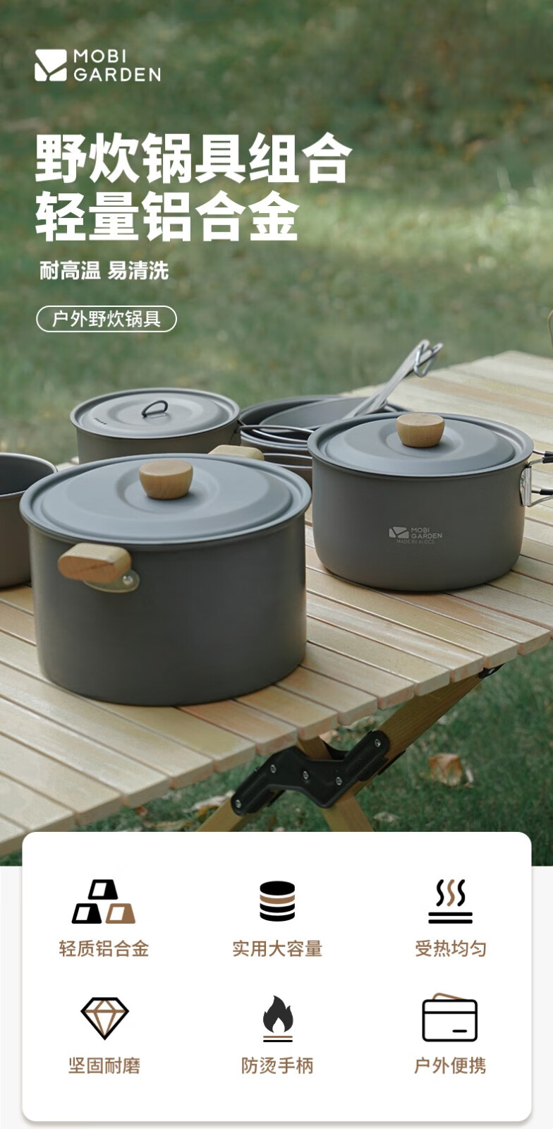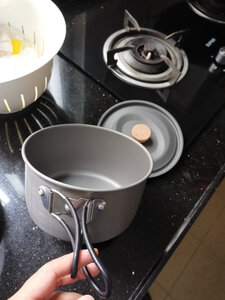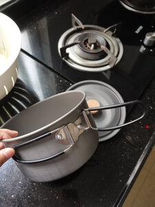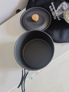 锅很好,容量大,适合自驾游腐败用,铝锅比钛过好,煮饭不容易糊锅,把手有胶套,可以防烫手。木柄设计在户外锅的设计很少见,感觉更有生活气息。 另外,把手是可以拆卸的,一般人不知道。😁😁