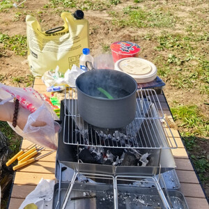 到手摸上去质感很好,好轻~户外锅就是轻巧热的快,到手马上配合炉头测试了一下热的非常快,铝合金的优点吧,2L的容量足够2~3人的使用量了,做饭煮水都很好,当晚就做了一锅腊味饭,非常快。牧高笛活动期间入手了一堆东西,非常好