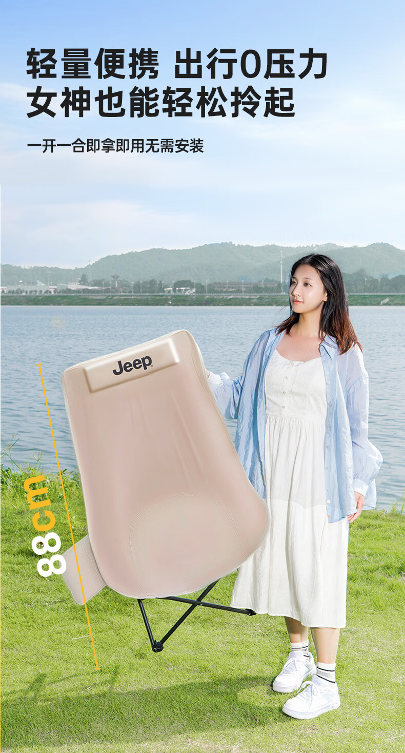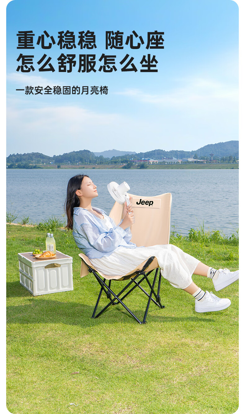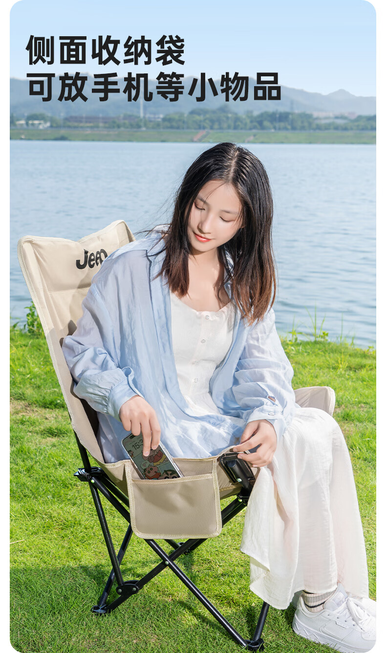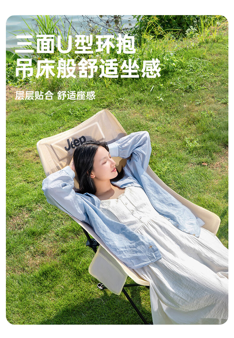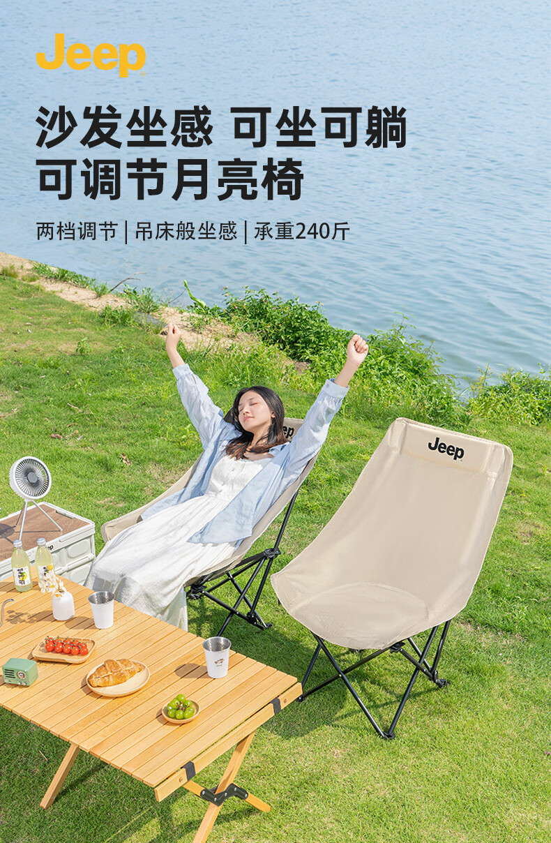 JEEP月亮椅露营椅子户外折叠椅便携式躺椅钓鱼凳沙滩椅野餐桌椅 可调节高背月亮椅【黑色】