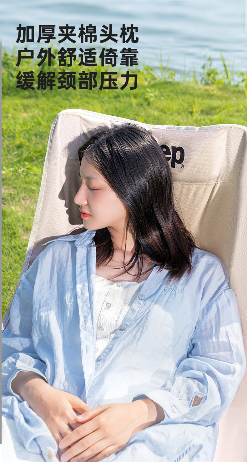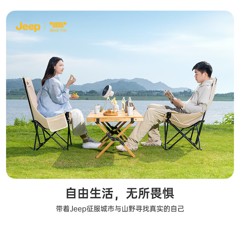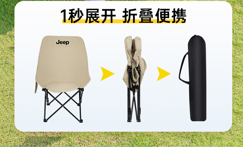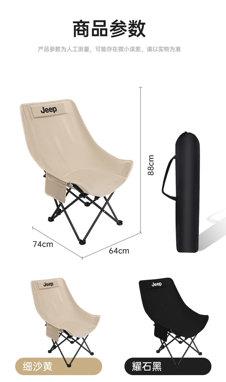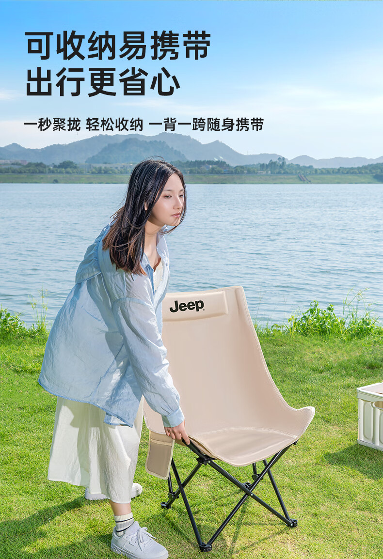 JEEP月亮椅露营椅子户外折叠椅便携式躺椅钓鱼凳沙滩椅野餐桌椅 可调节高背月亮椅【黑色】