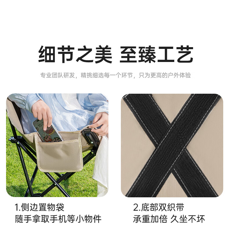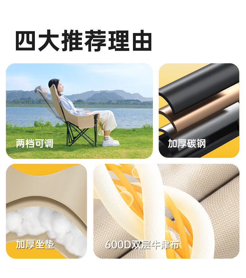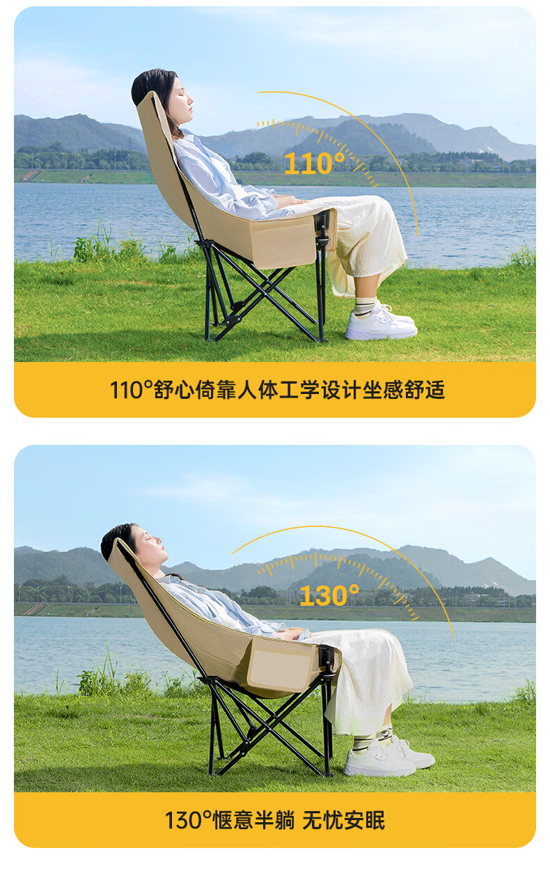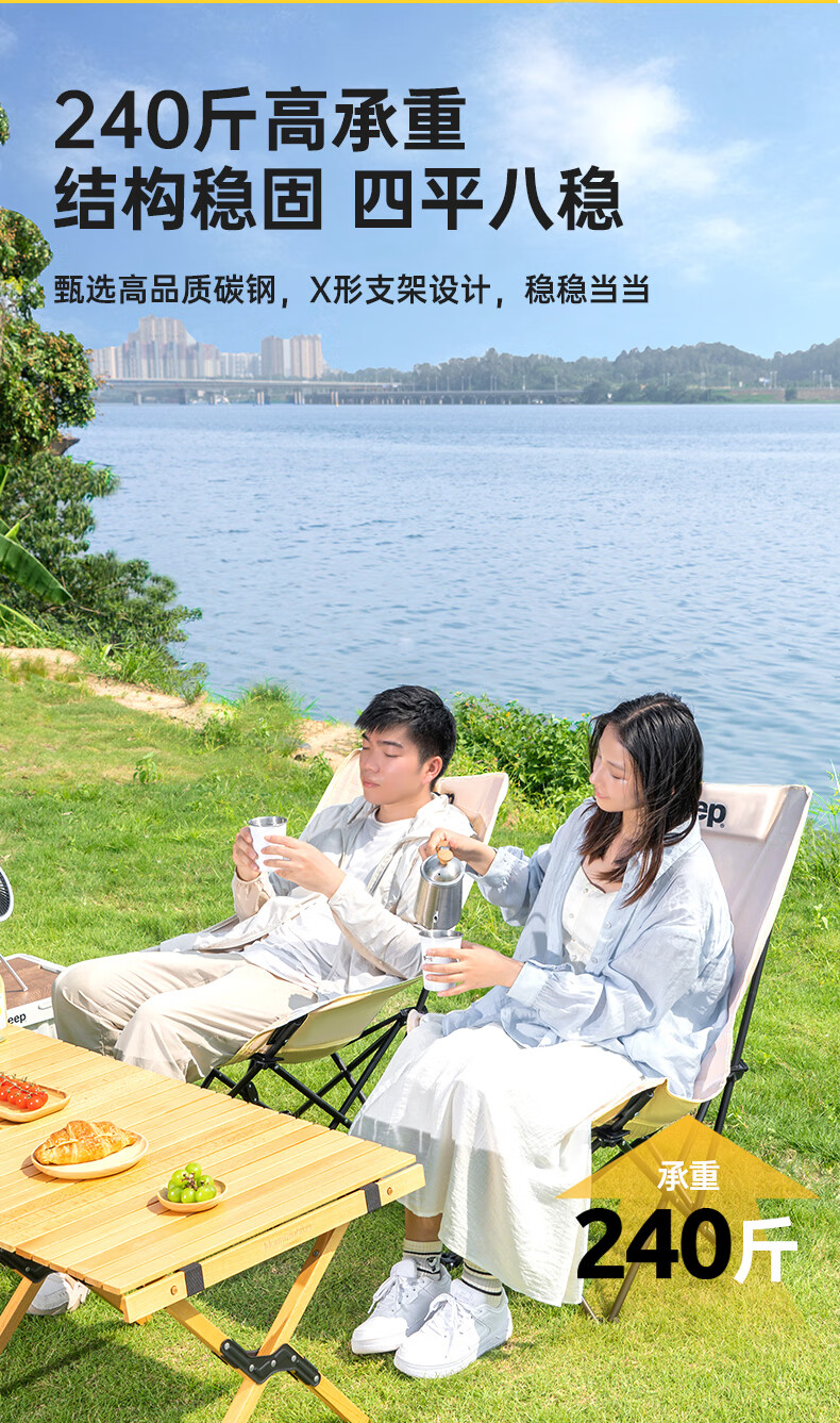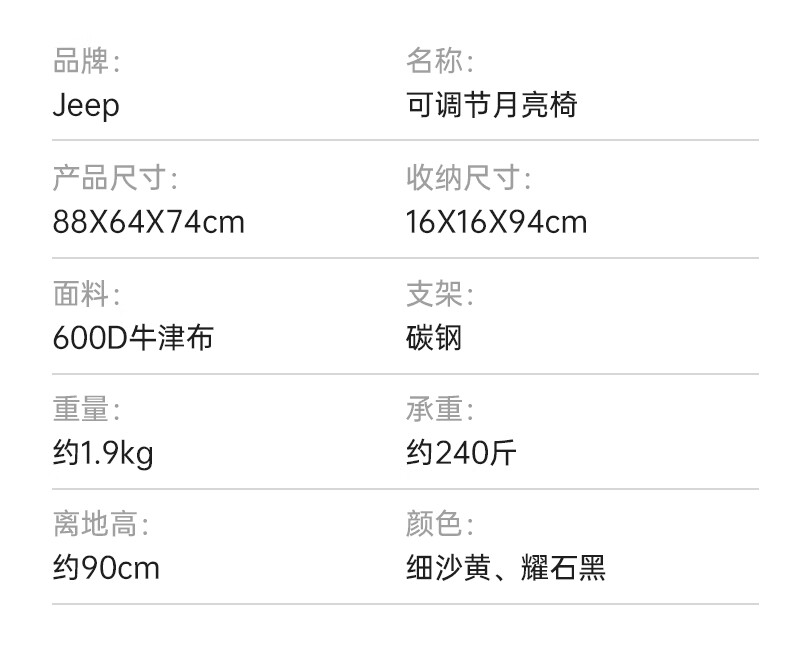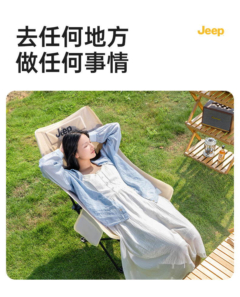 JEEP月亮椅露营椅子户外折叠椅便携式躺椅钓鱼凳沙滩椅野餐桌椅 可调节高背月亮椅【黑色】