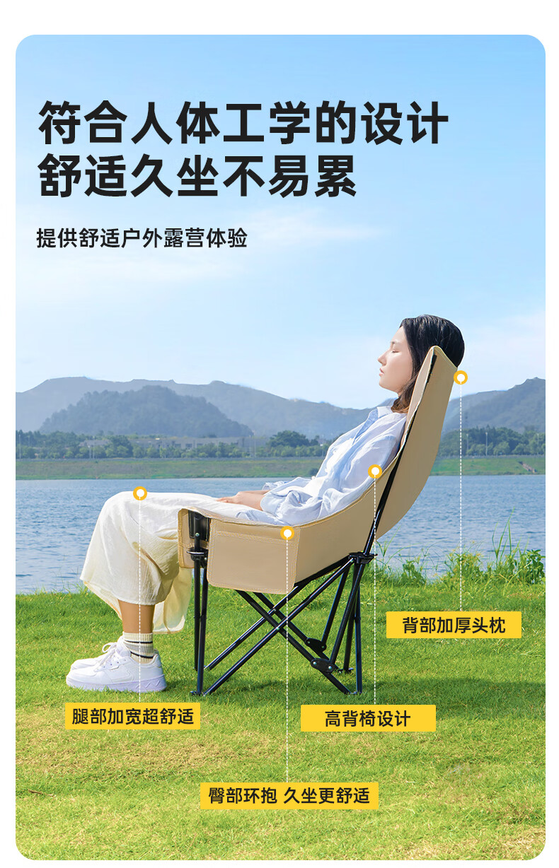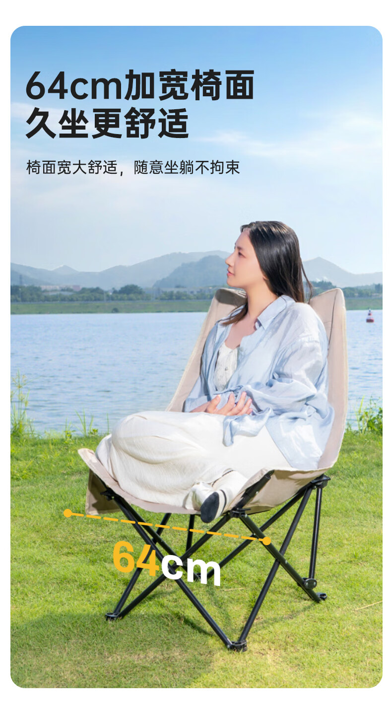 NatureHike挪客户外便携折叠椅 休靠背椅 旅游露营钓鱼休闲椅子超轻克米特椅 卡其色-小号