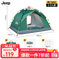 JEEP全自动露营帐篷户外防晒防雨双人双层公园野外帐篷免搭建 森林绿【2~3人】涂银防晒款