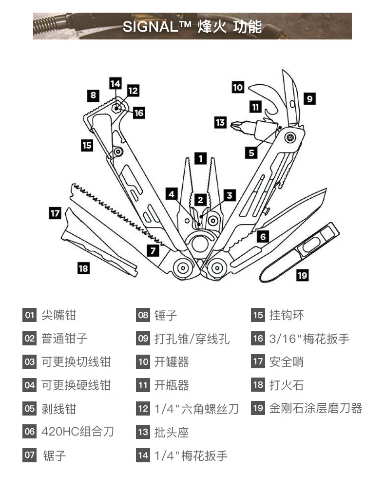 莱特曼美国 SIGNAL烽火多功能折叠钳组合EDC工具随身式户外开刃 SIGNAL烽火-银色