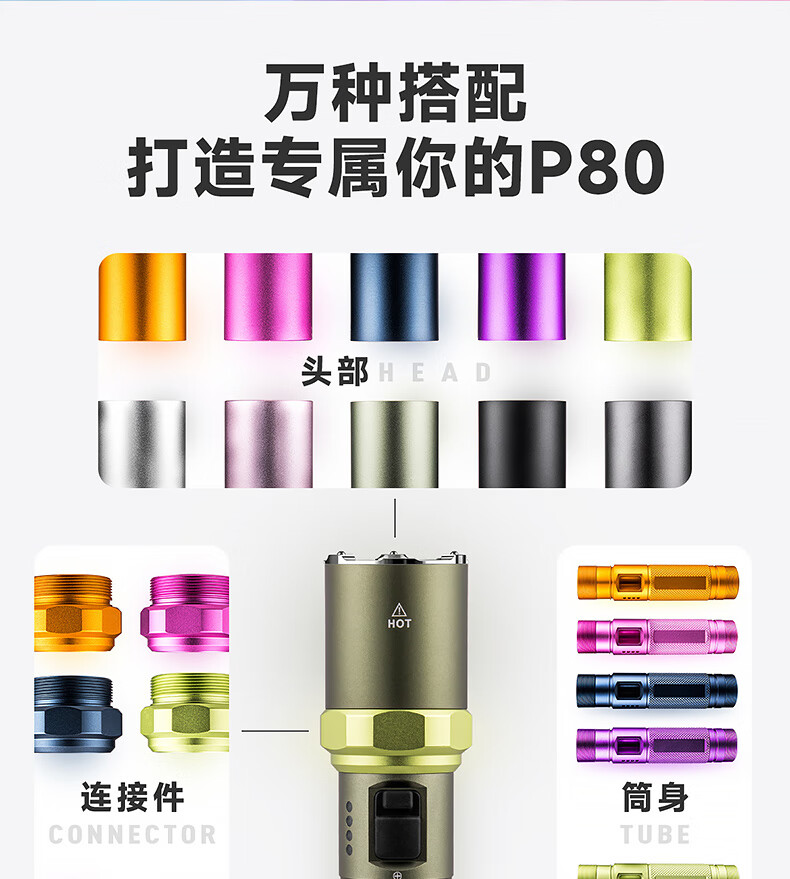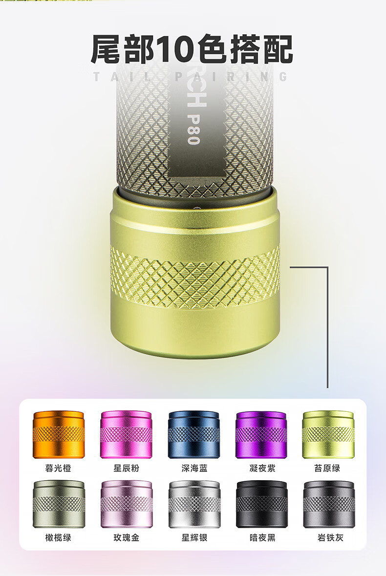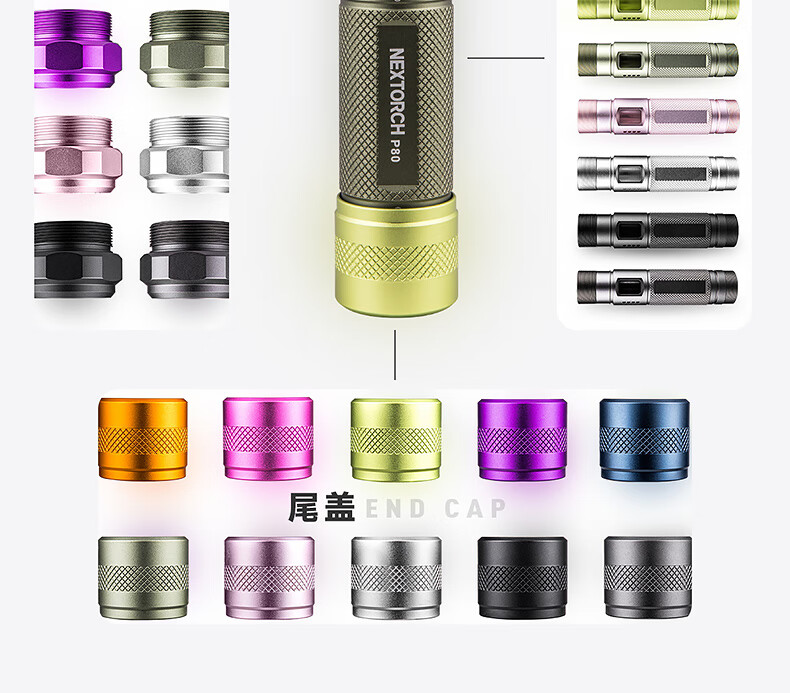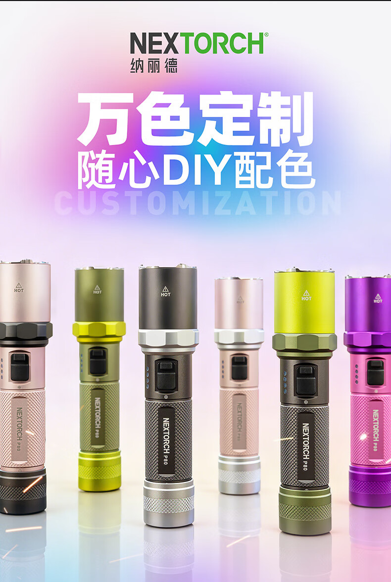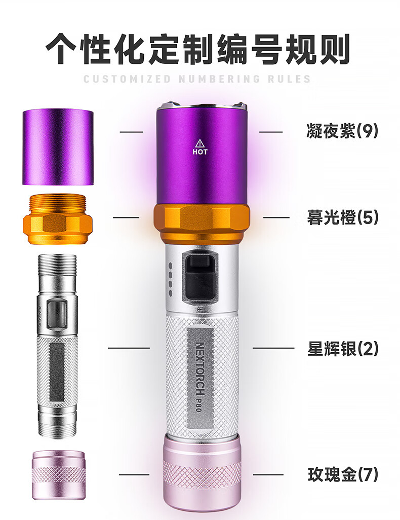 纳丽德(NEXTORCH)P80 DIY自由组合颜色搭配强光超亮手电筒户外露营应急防身手电筒 P80-DIY颜色(备注对应4位数下单)