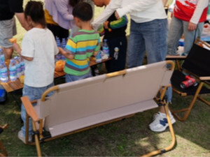 很不错的双人位,面料扎实有韧劲,缝线平整周正没有开线的情况,管材是铝合金的虽没有木质的自然亲肤温暖,但也胜在了轻巧便利.
