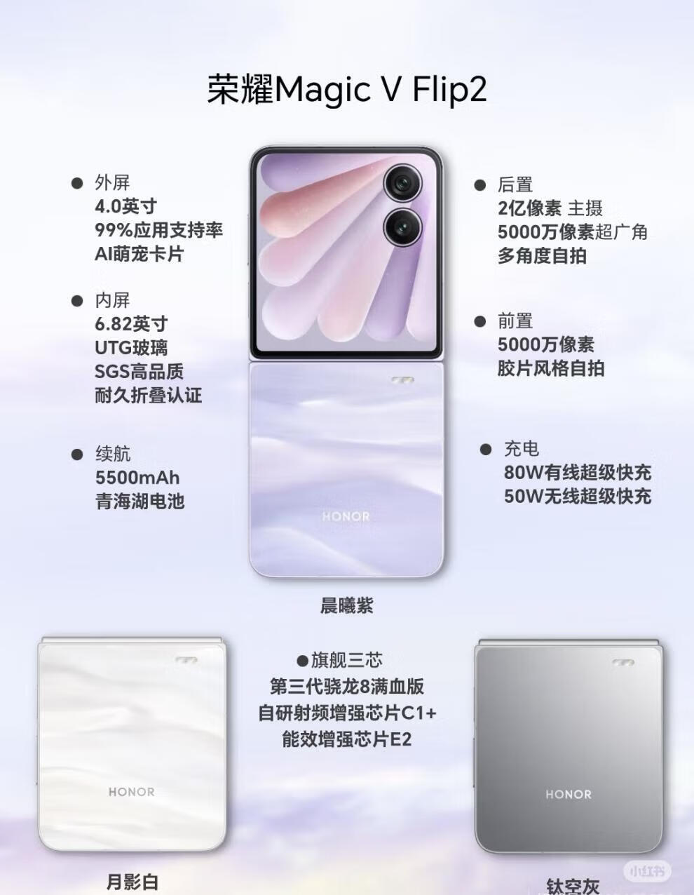 荣耀(HONOR)Magic V Flip2 展样机 折叠屏手机 第三代骁龙 8 5500mAh 青海湖电池 正品赠运费险详情咨询客服 月影白 12GB+512GB_