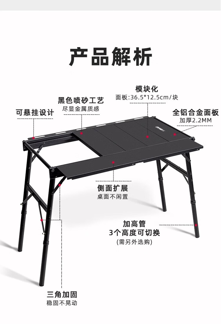 OnwaySports可调节高度蛋卷桌户外折叠露营桌便携铝合金装备野餐野营升降桌子 【黑化】蛋卷铝台