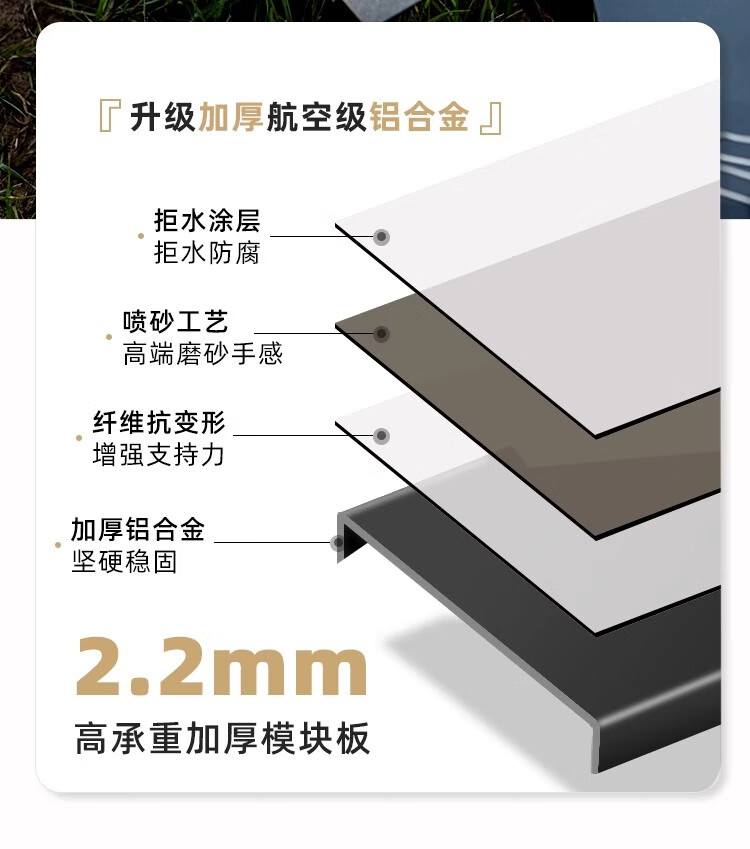 产品做工非常好,铝合金很轻,桌腿很粗,支撑性很好,桌板三个一组配了单独的收纳袋,整体的收纳带也刚刚好,很结实。价位同类算高,但感觉值这个价,满意。 暂时先买了个桌子,以后露营感觉缺啥再配。
