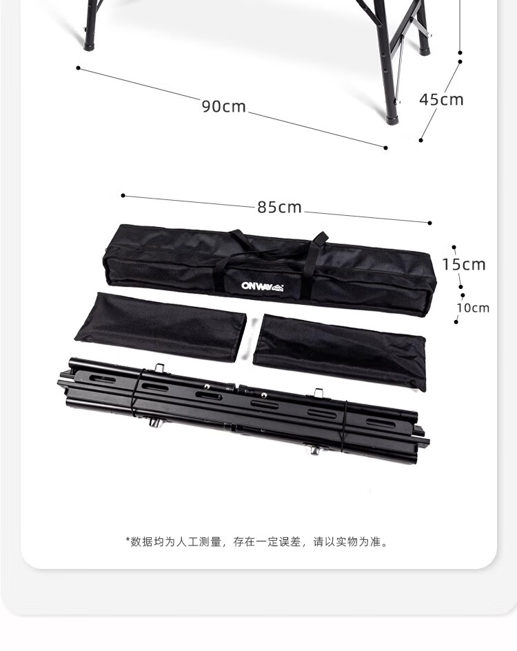 OnwaySports户外自驾分体式升降茶几桌 露营便携轻量折叠桌子 OW-8448 黑色蛋卷桌 小号
