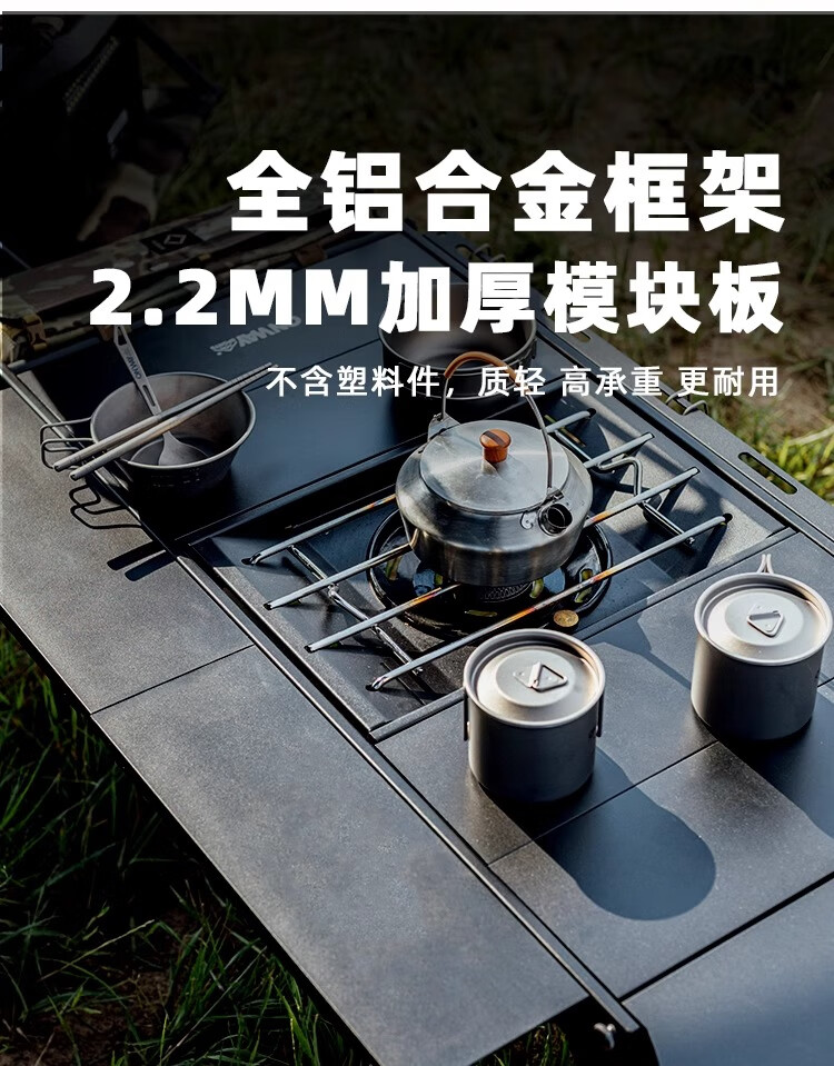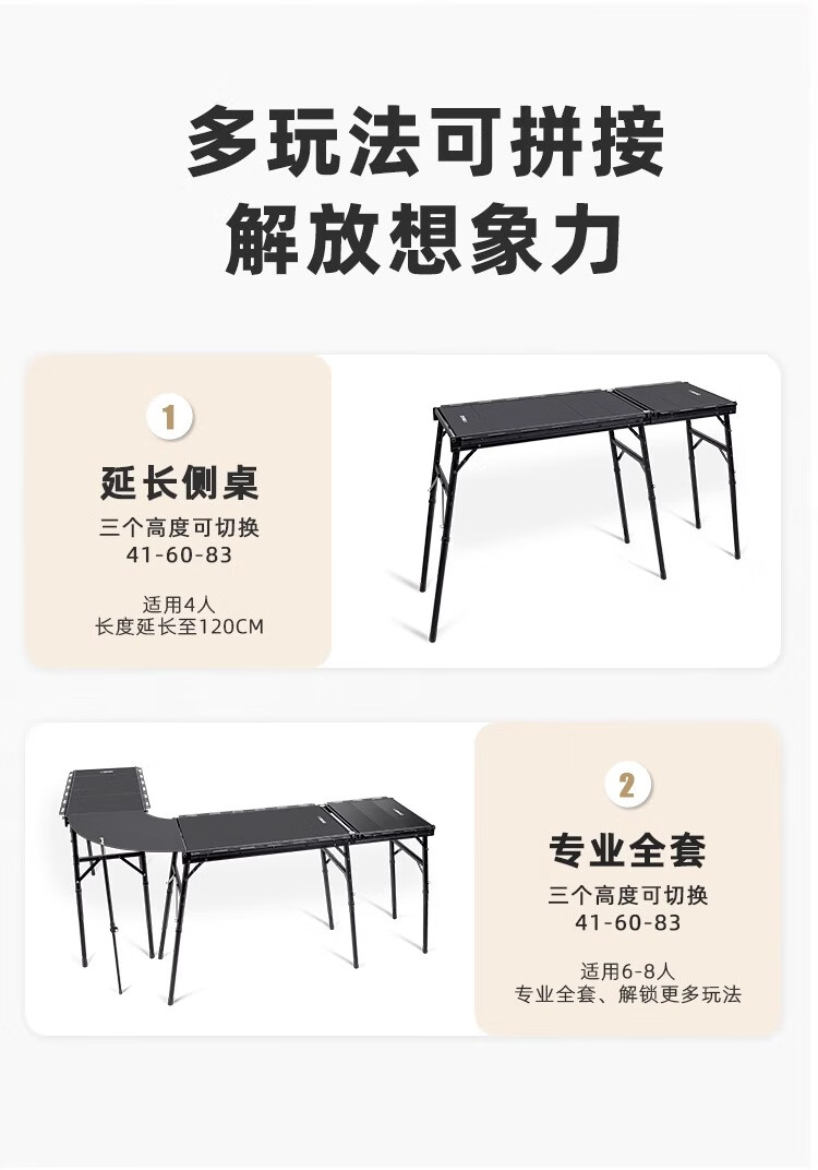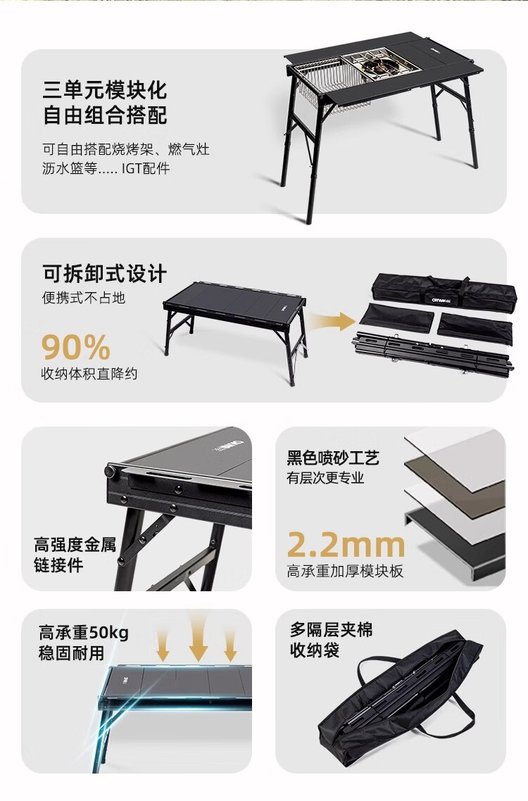 OnwaySports2+2单元IGT桌户外露营用品装备SOLO折叠野餐模块多功能战术组合桌 【专业/加高版】黑化