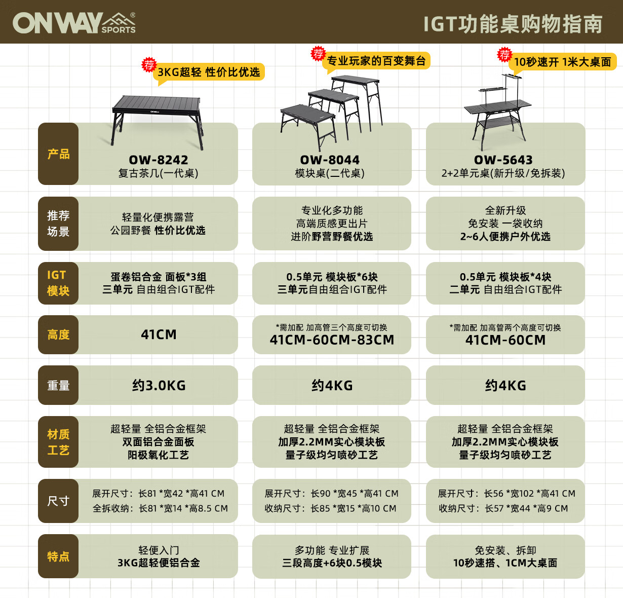 OnwaySports战术桌IGT户外折叠露营桌轻量化野餐野营多功能加高扩展拼接桌子 二代模块桌