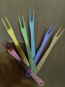 钛途(TITO TITANIUM)纯钛水果叉99.5%钛合金户外餐具儿童男女 水果叉 冰花暗夜金(一支)