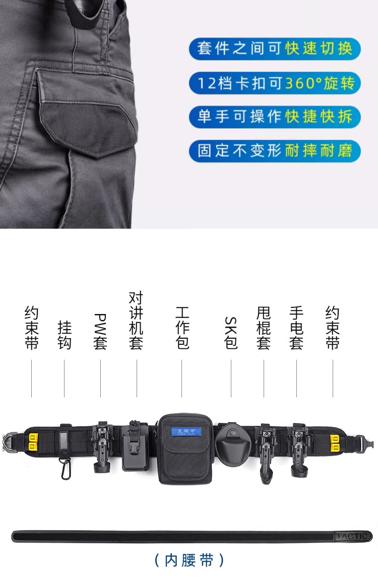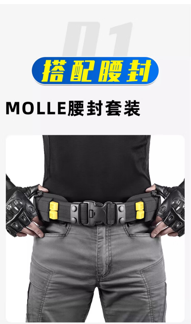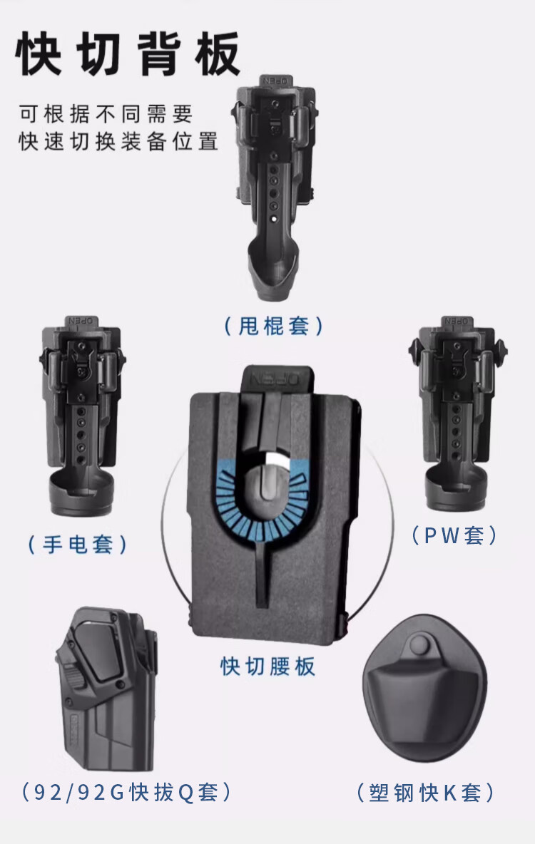龙鳞甲战术塑钢快拔套装通用八大件作战户外装备尼龙快拆腰封甩棍手电套 战术腰封三件套 M