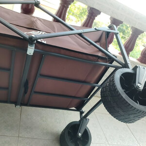 买了这款露营车用来搬家,总体来说哈哈不错吧,就是这个拖手这里不知道为何固定不紧,老是拖着东西就送掉了,唉就是这里算一个小小的瑕疵吧!有一丢丢的遗憾啊,不过还是愿意推荐给大家的,毕竟实惠嘛!