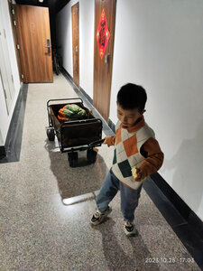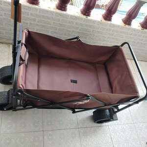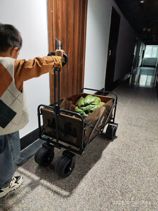 这么多东西都是用小车车拉来的,不错不错啊,轮子宽大,分量挺重的,这个拉车性价比很高,减少了负担,小孩子也可以坐在里面非常好,车轮是可以任意方向装动,配套买了桌板使用,平时采购物资非常便利