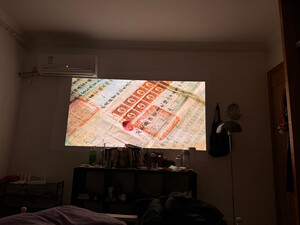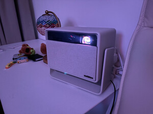 物流非常快,1天就收到了,国庆节正好可以用。就是看中这个外观入手的。主要放在卧室用,就放在桌子上侧投,效果非常好。