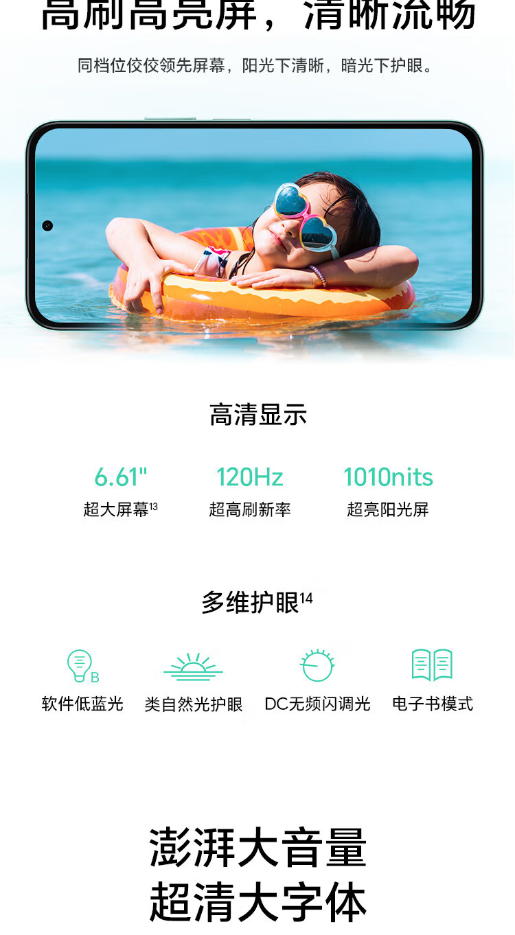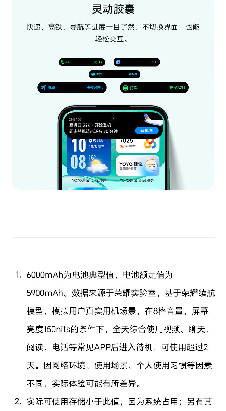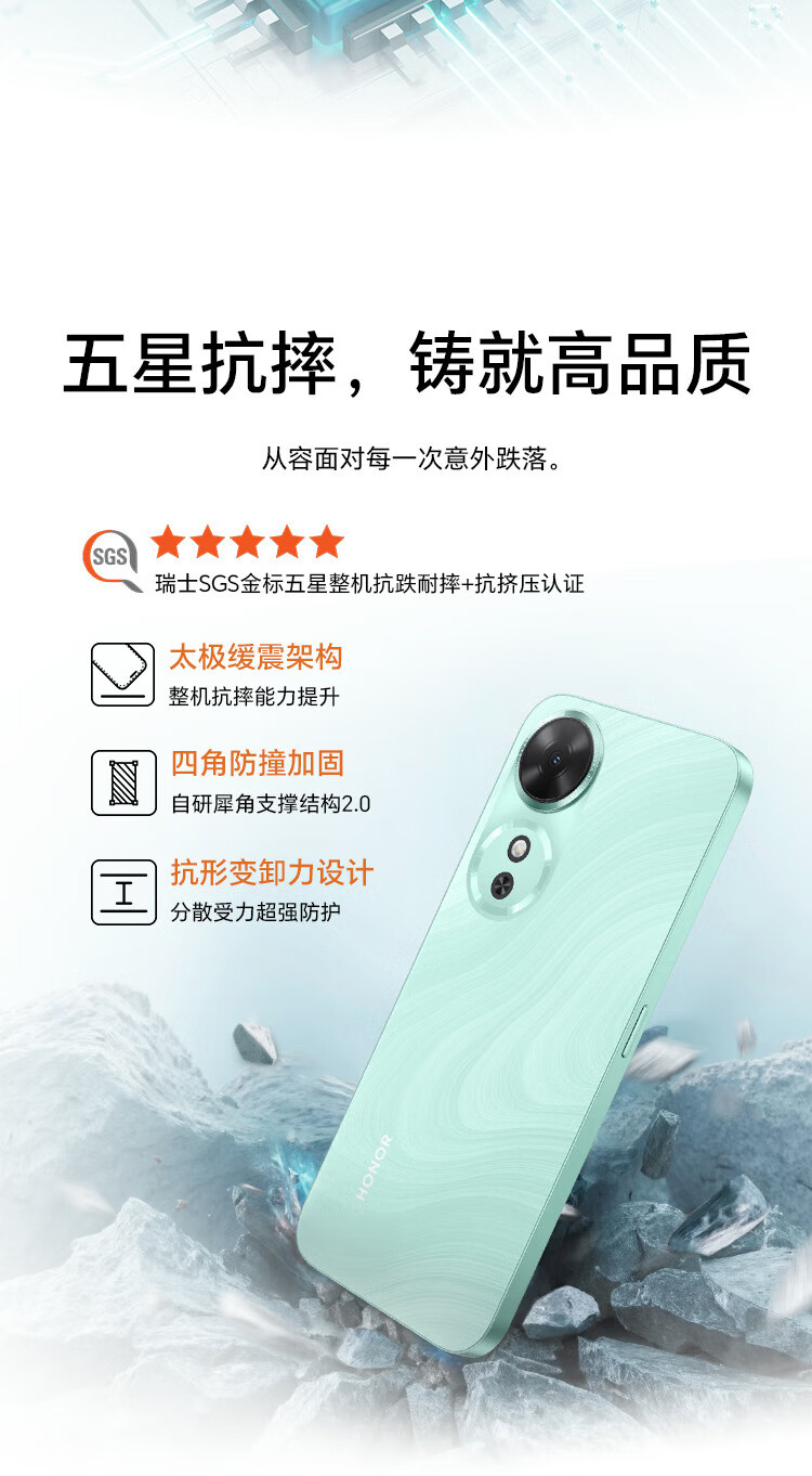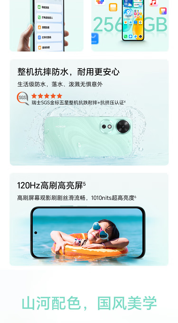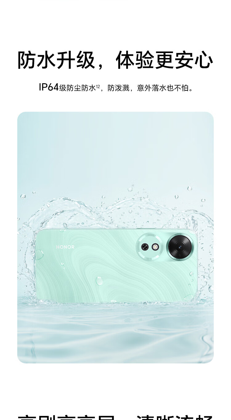荣耀畅玩60m 6000mAh超长续航 120Hz护眼高刷LCD屏 天玑6300 IP64抗摔防水 5G全网通智能手机 6.61英寸 玉龙雪 8GB+256GB
