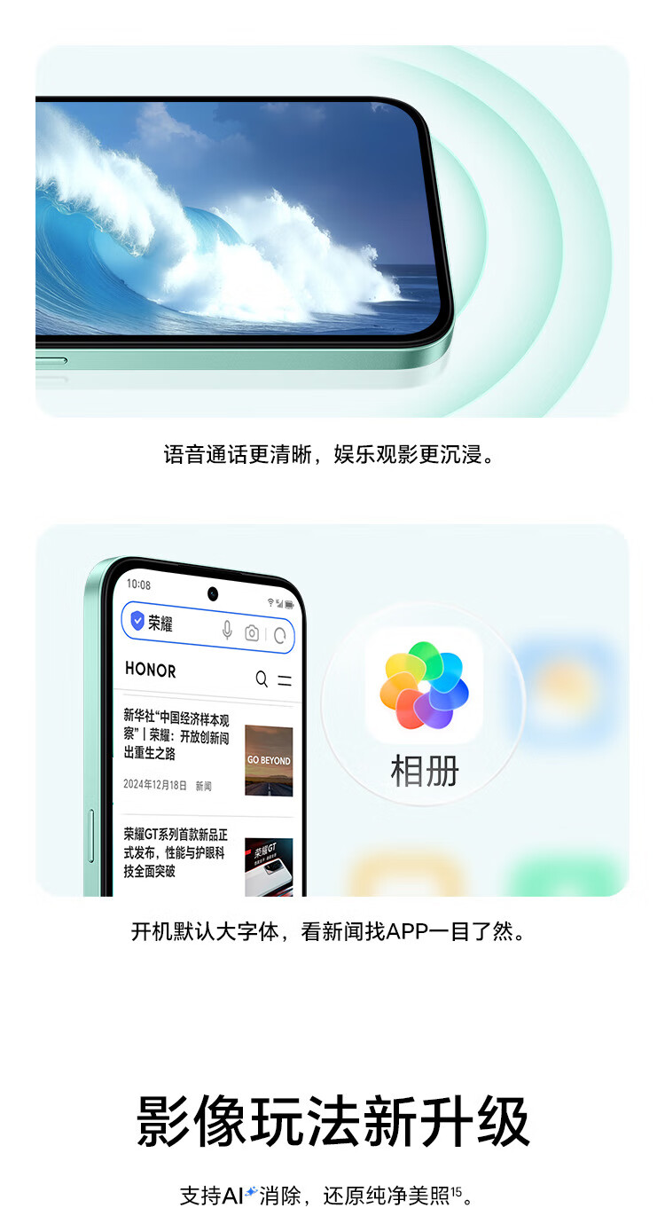 荣耀畅玩60 5G手机 高清大屏大内存 6000mAh长续航 2025新品上市 晓山青 8G+256GB