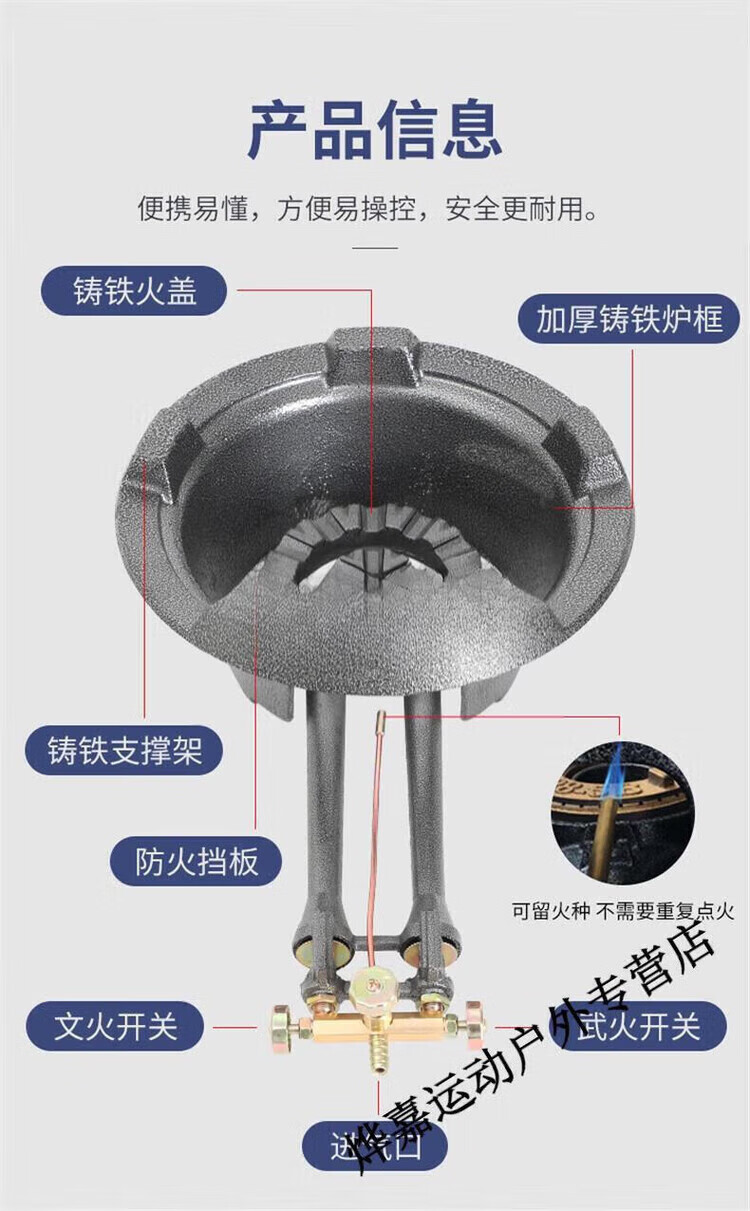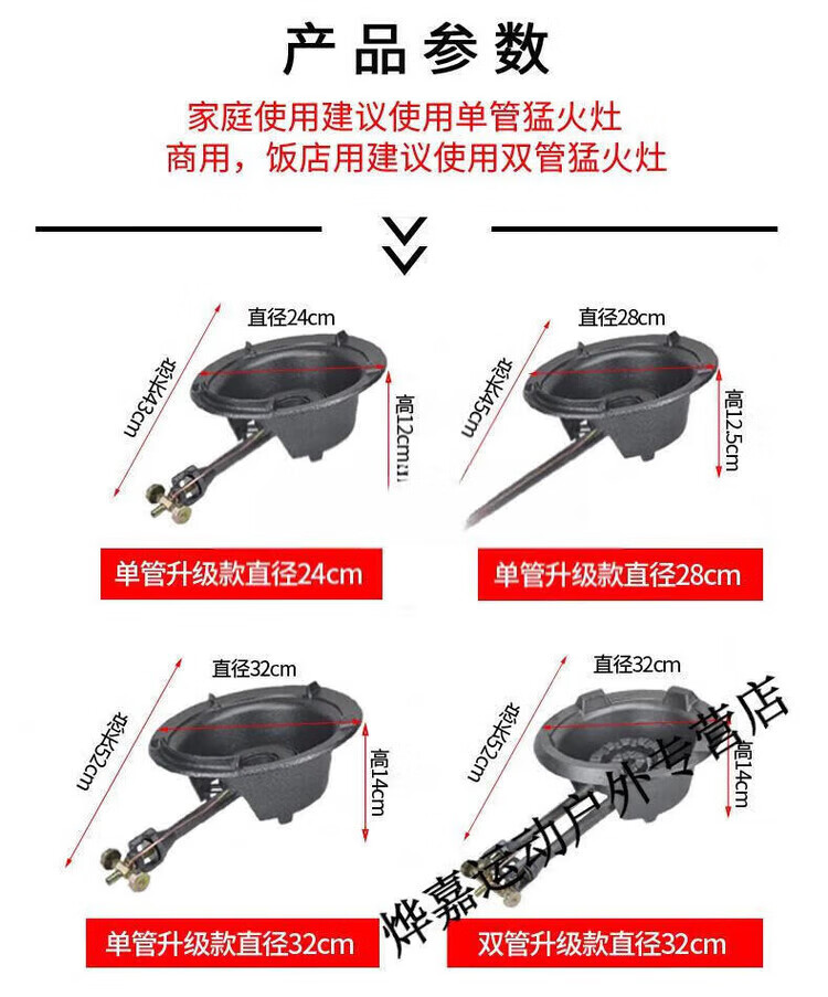 商用猛火灶 户外摆摊单灶液化气老虎灶高压燃气煤气灶饭 直径24厘米单管无配件
