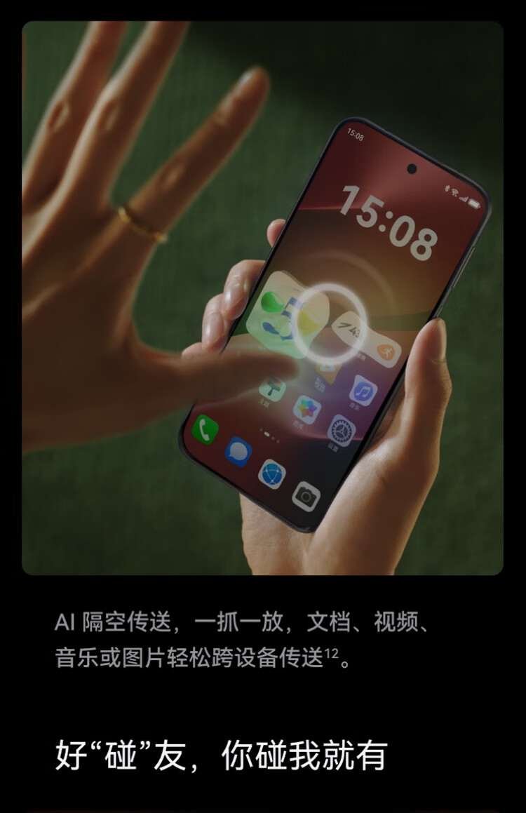 AI大模型,轻薄,LTPO屏幕,高频PWM调光,全焦段影像,潜望式长焦,防水防尘,无线充电,NFC,红外遥控,大底主摄