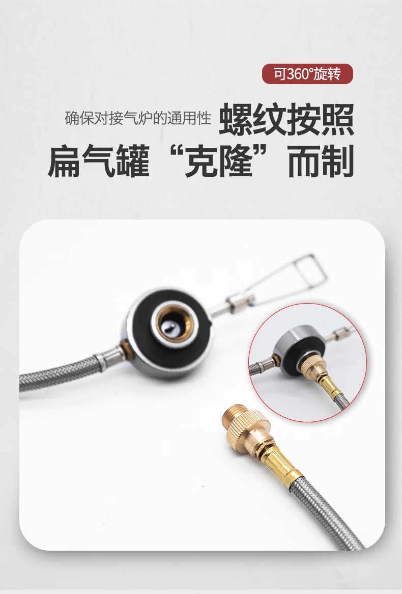 CAMPSOR 户外炉头转接头线 野外炉子转接煤气瓶链接管 转接头铜接口 单头链接管