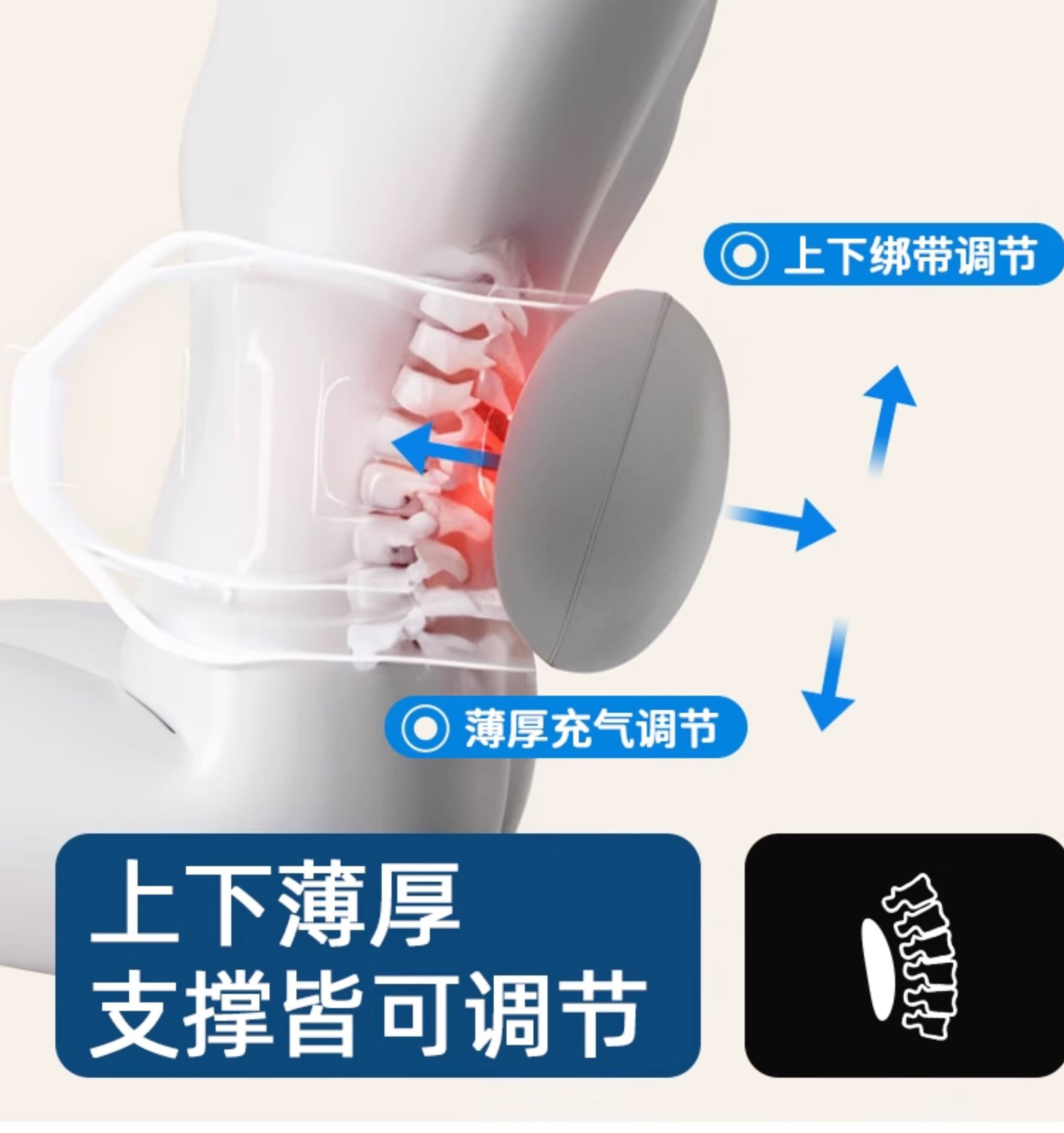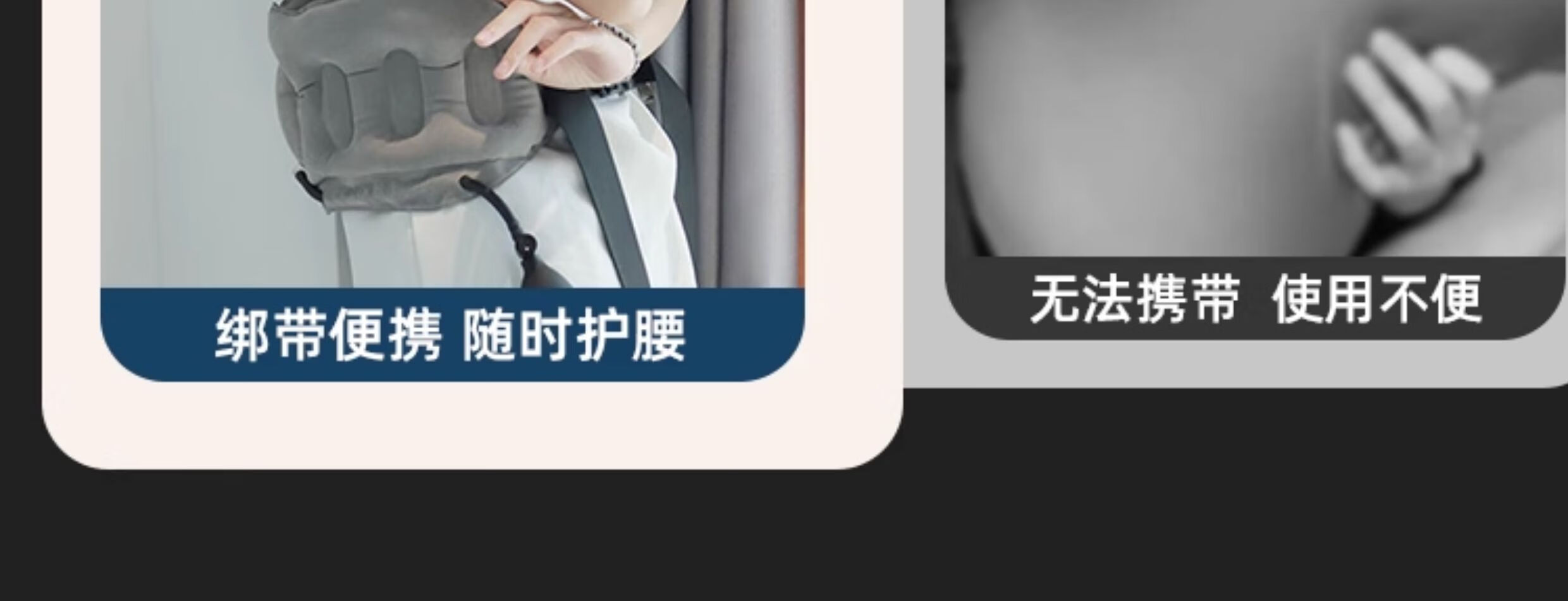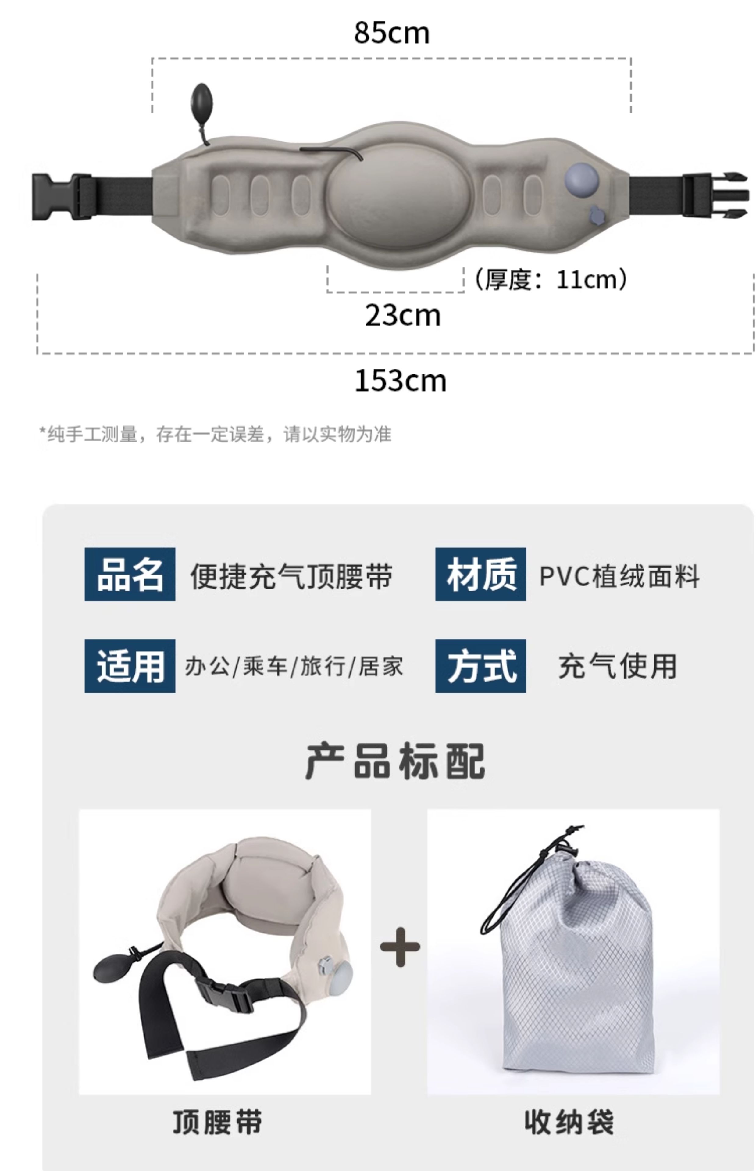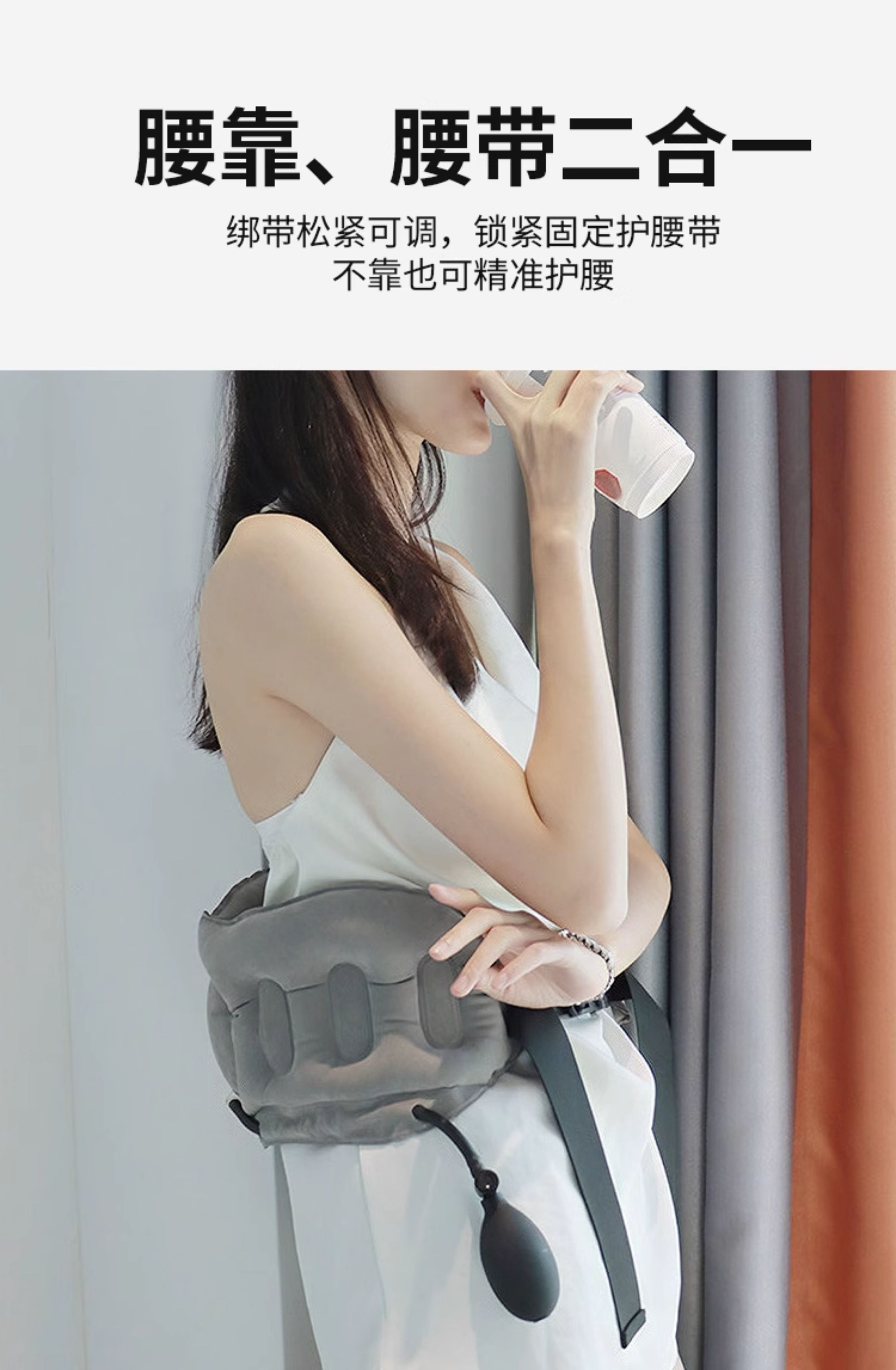 平时腰不太好,无论是在家还是出门,我都喜欢绑着这个腰带,中间可以调节硬度的垫子靠着非常舒服,比以前用的那种腰靠好,面料是很亲肤的,质量也很好,不会漏气,收纳起来小小的,完美解决我的需求,好好好!
