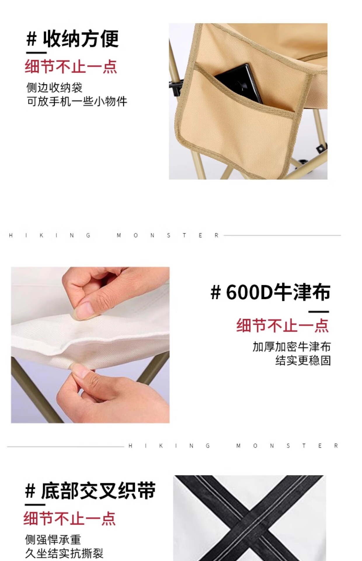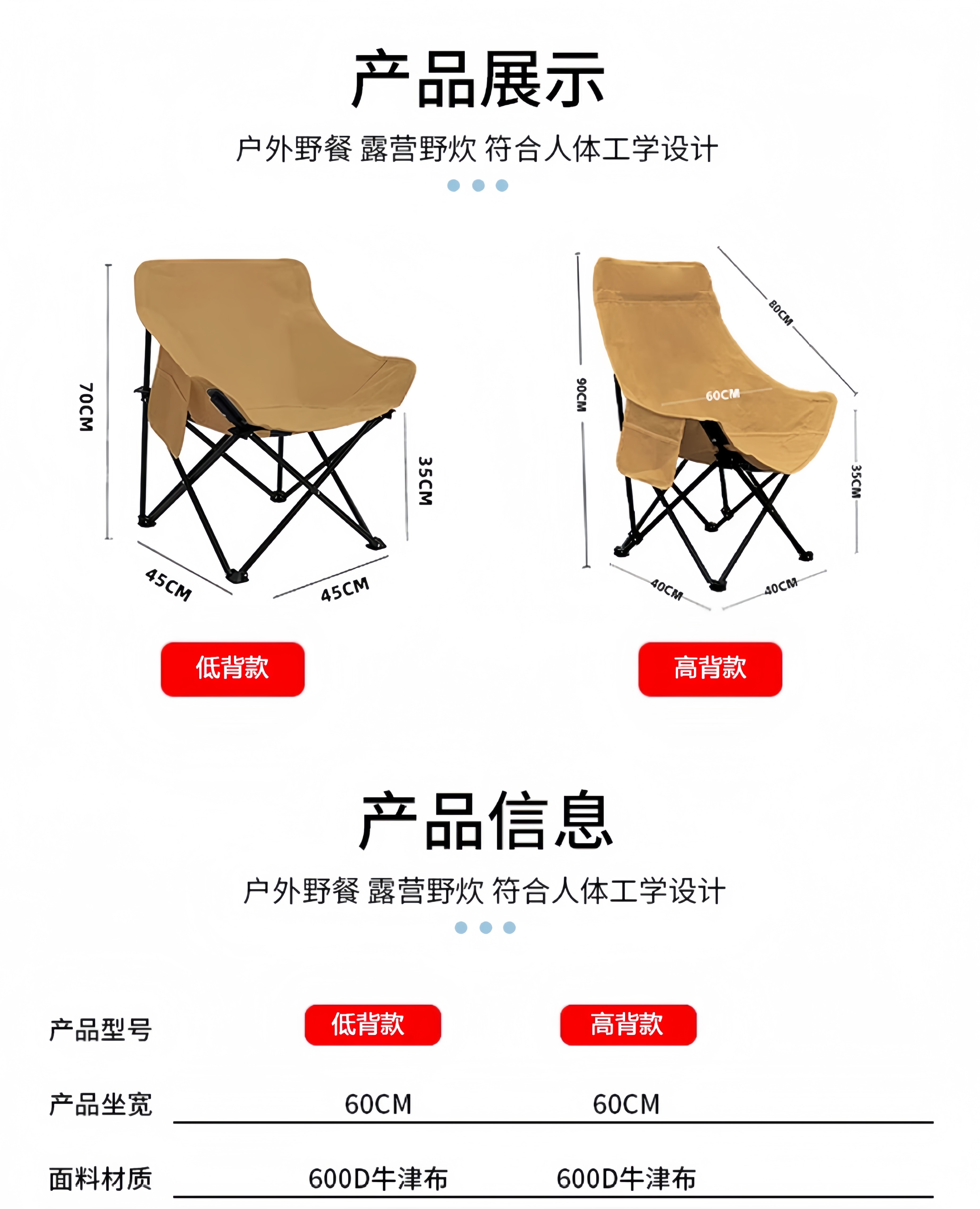 OIMG月亮椅户外折叠椅替换布露营配件600D加粗加厚牛津布椅面坐垫布 高背-替换座面卡其色适合底座45