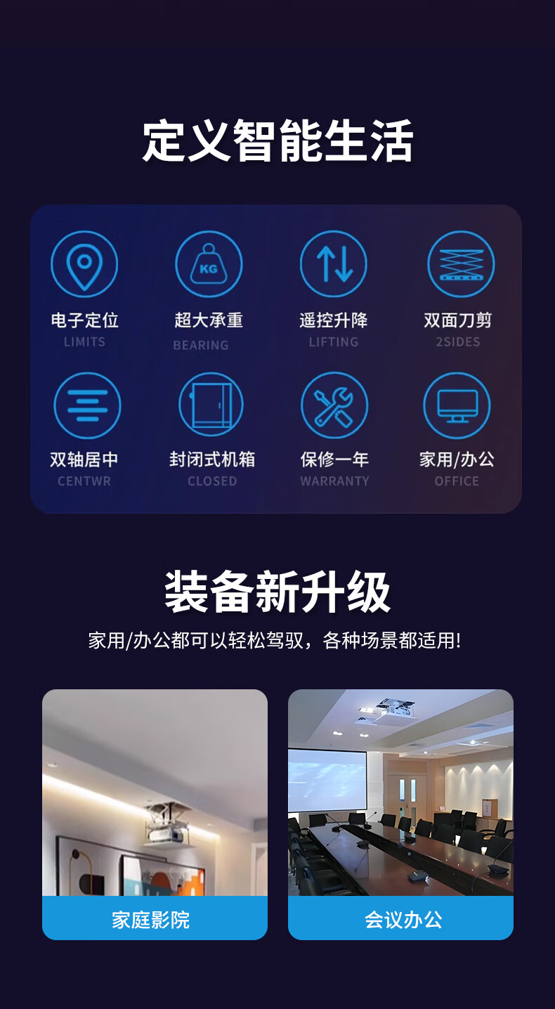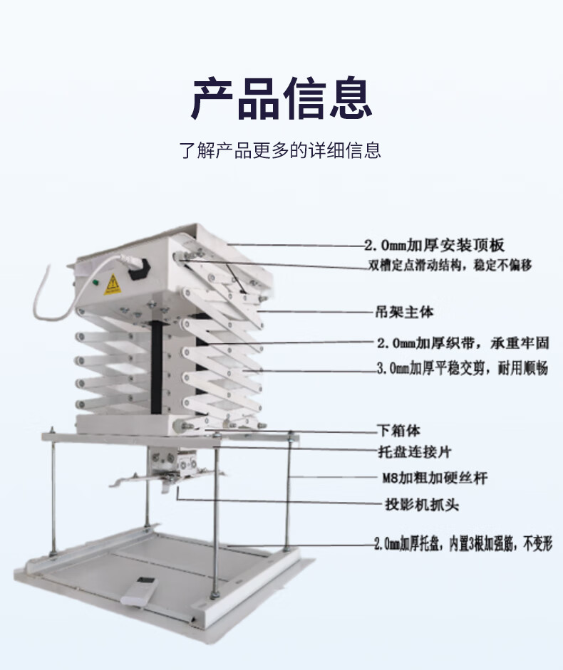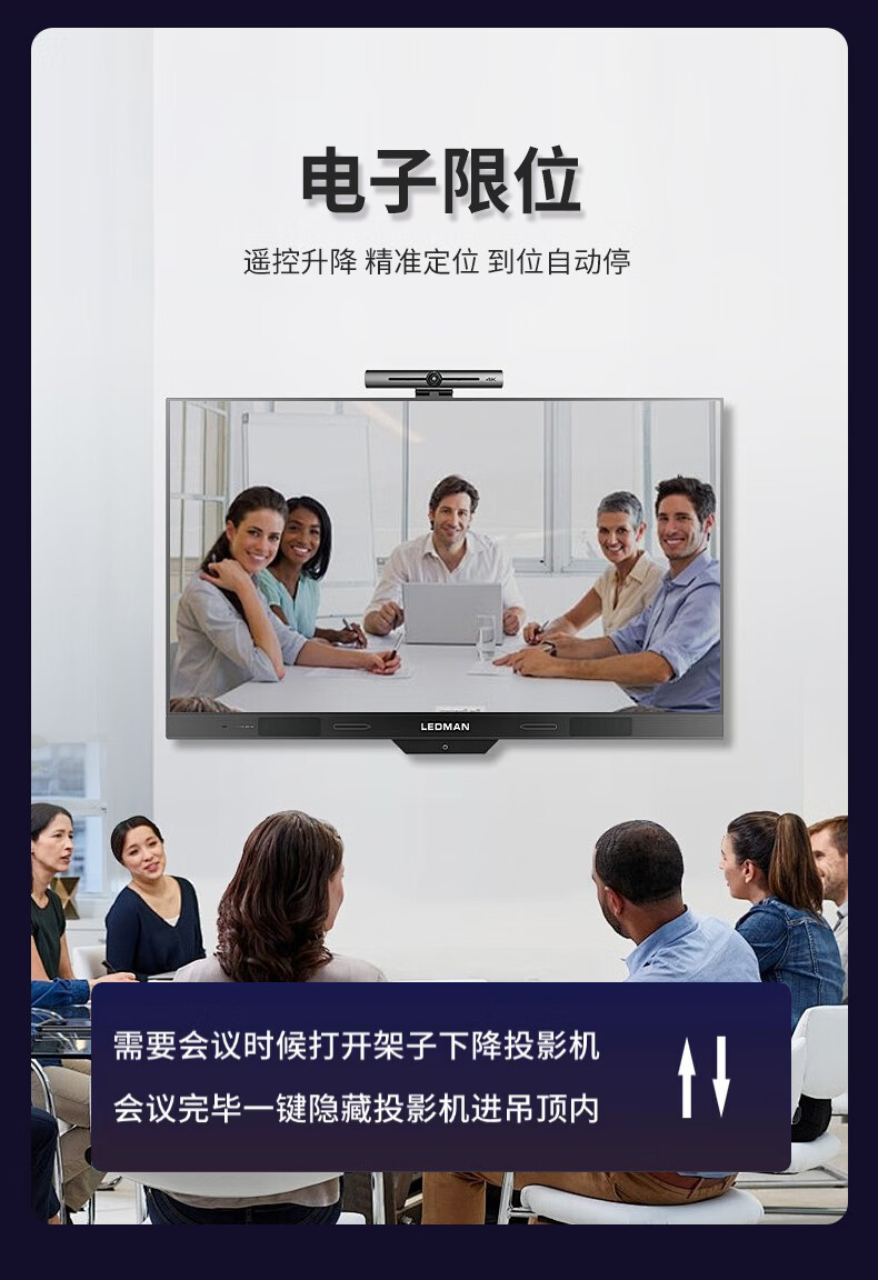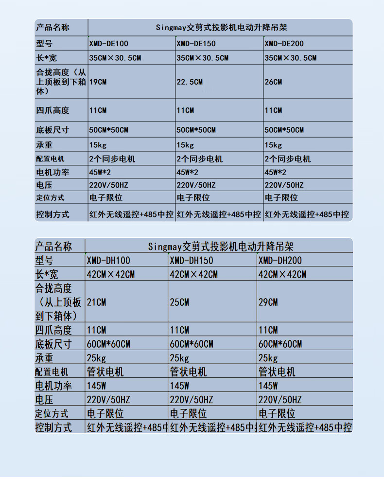 SINGMAY投影仪电动升降吊架电动隐藏双电机运行遥控/485中控带电子限位适爱普生松下NEC光峰明基等投影机 XMD-DE150行程1.5米承重15KG50底板