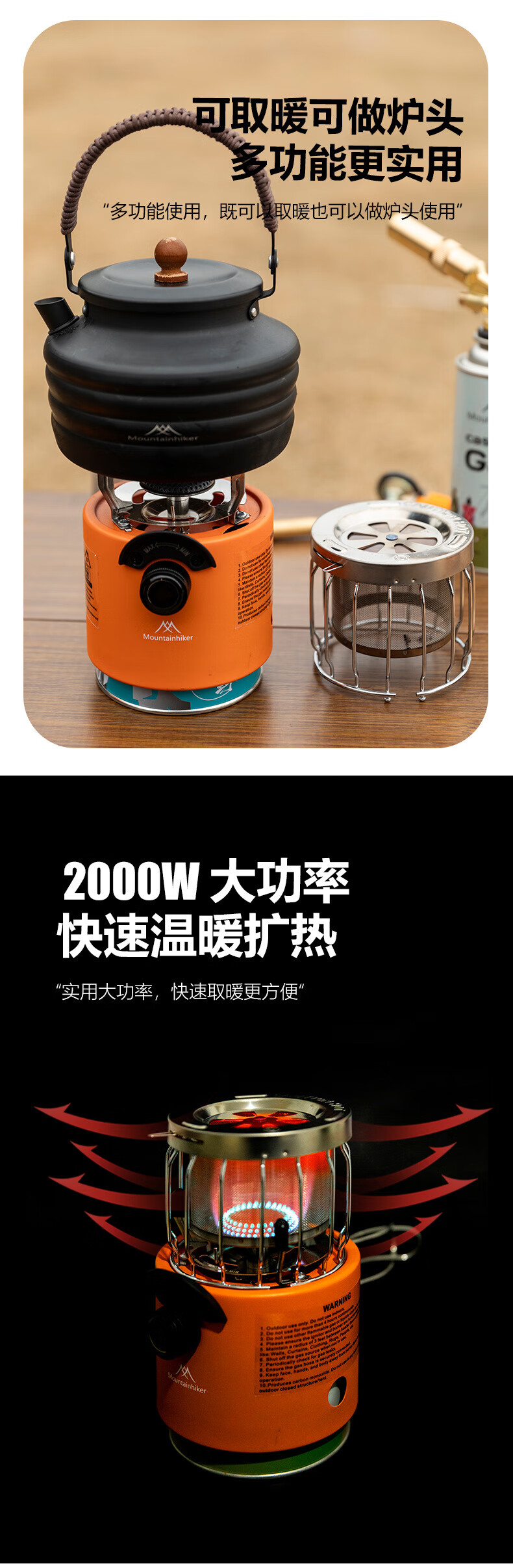 山之客(MOUNTHIKER)多功能取暖炉|户外暖手器2秒速热多档可调节可加热/烧开水小炉头 多功能取暖炉提手款