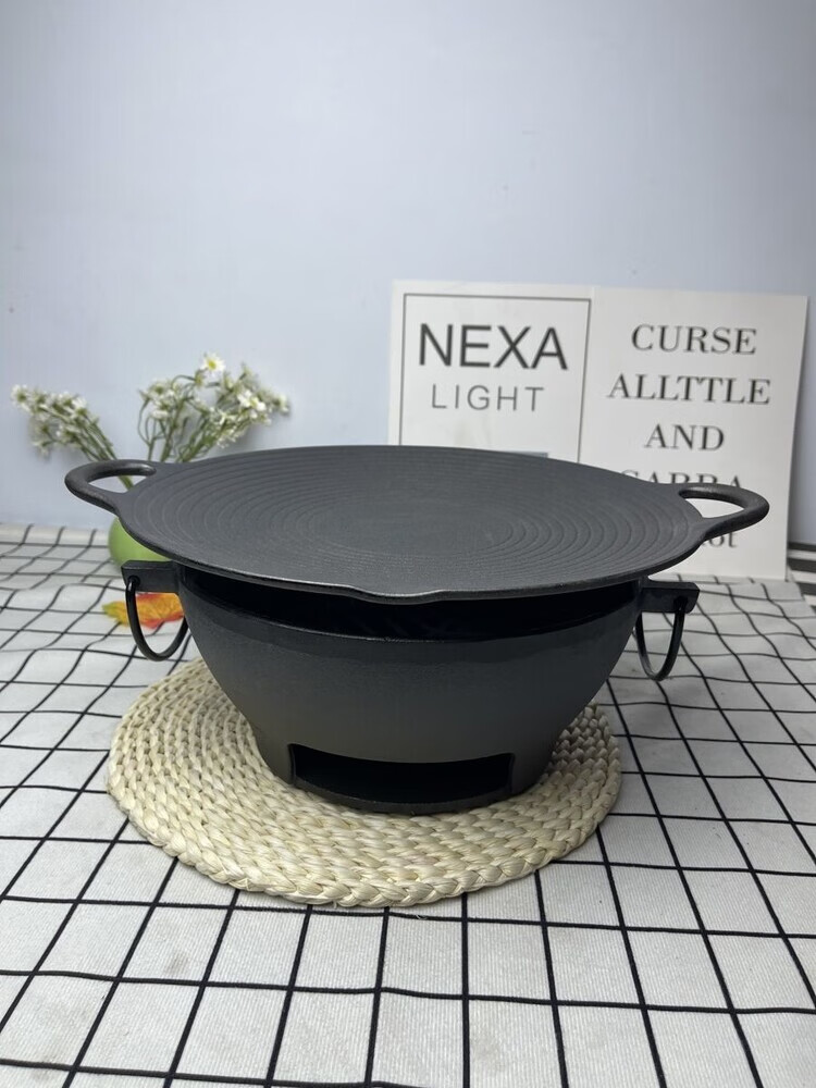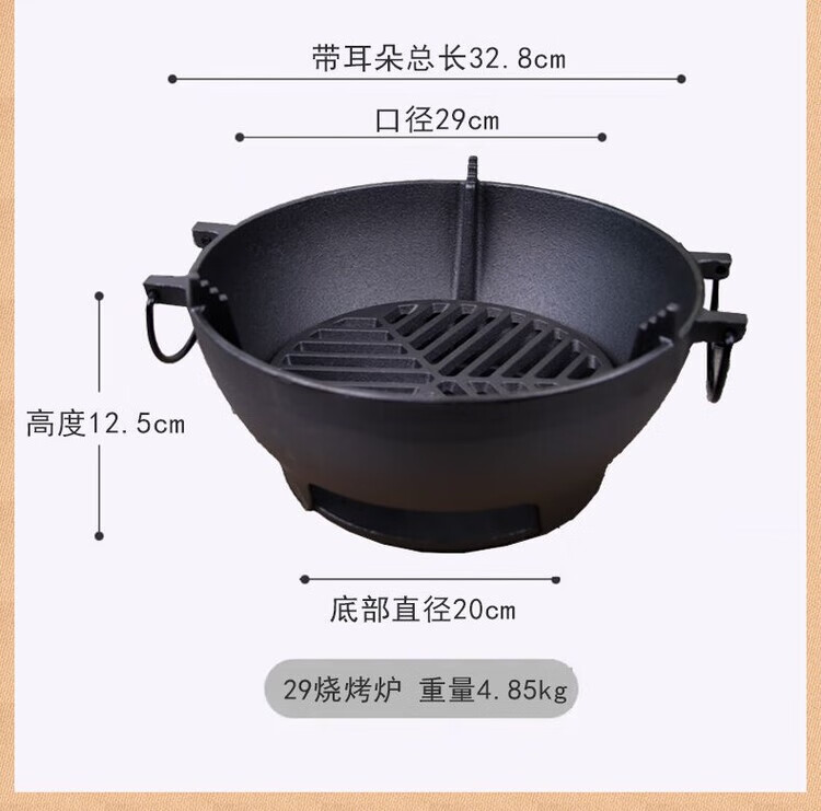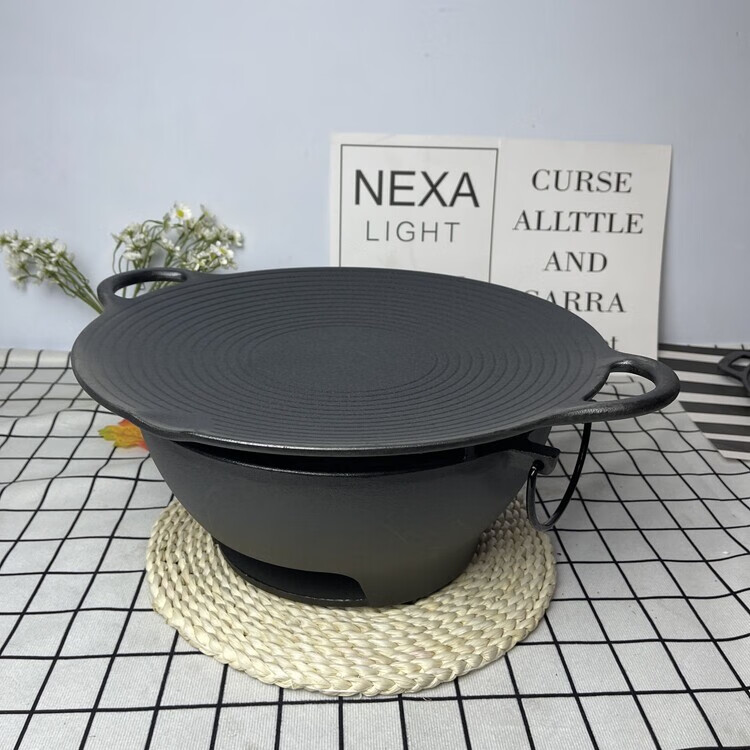 户外铸铁烤炉烧烤炉烧烤肉圆形煮茶露营木炭无涂层加厚 29cm炭火炉(单烤炉)