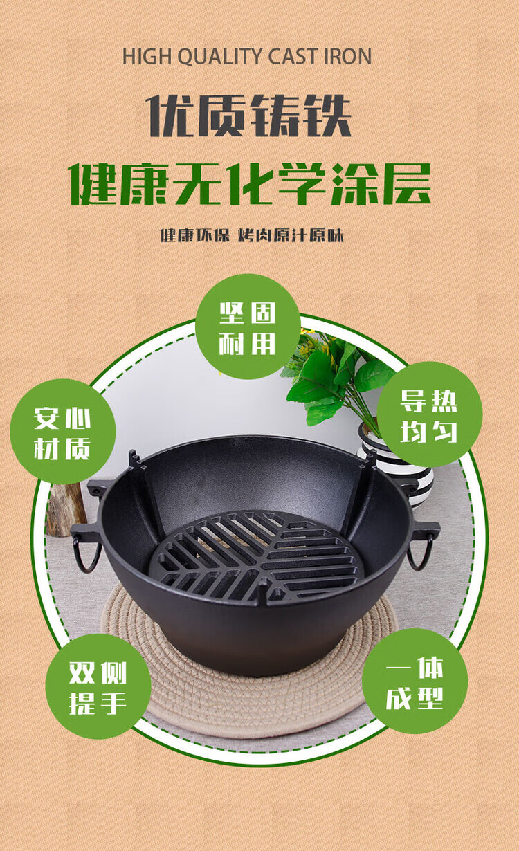 铸铁烤炉铸铁烤肉盘家用煮茶全套新款室内户外多功能烤炉套装 26cm烤炉/烤网/木托+38cm烤盘