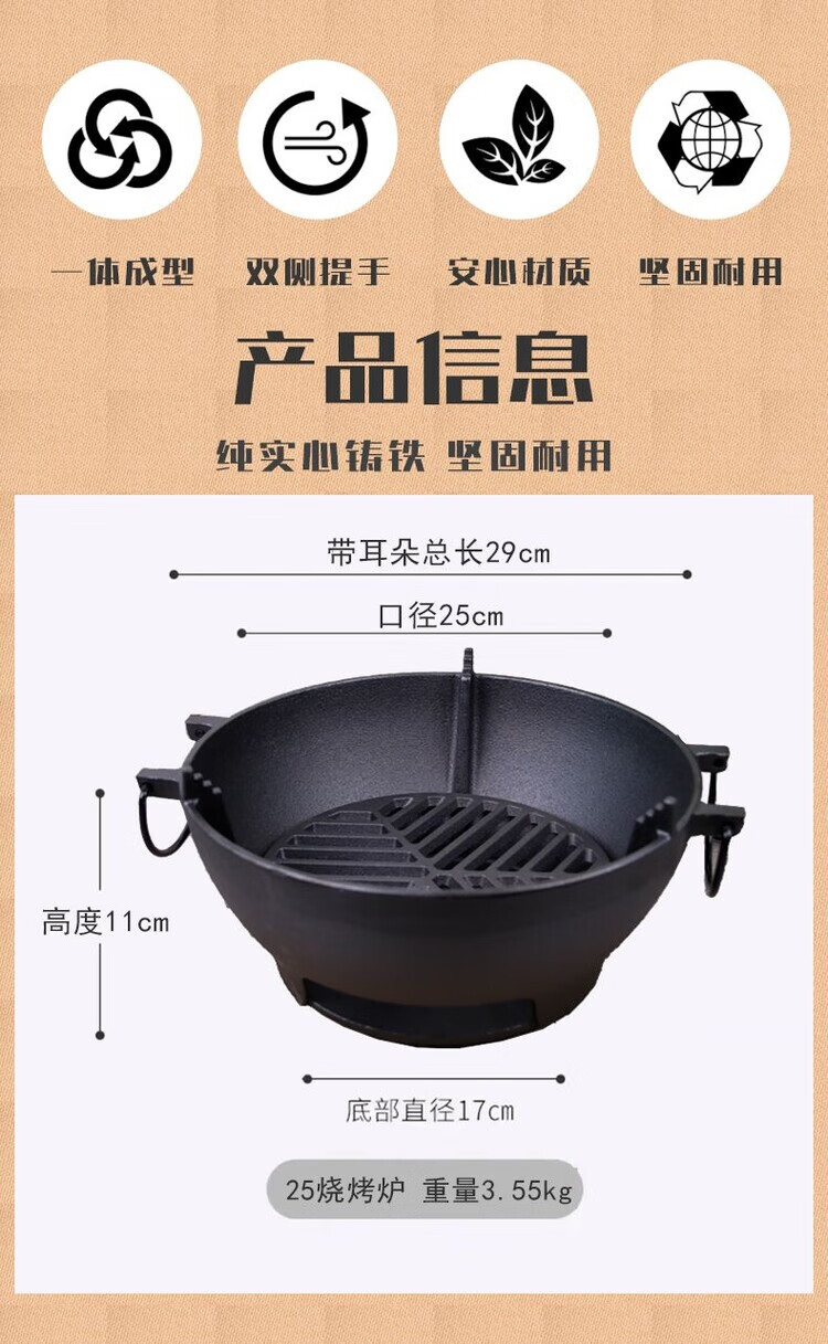 买的时候就想挑个尺寸大点的铸铁炉、盘,质感足足的,没有怪味,一家人围炉烤火、烤肉、煮茶足够了!